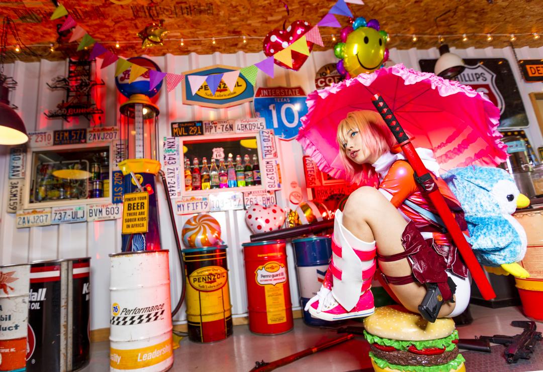 衣装や小物はもちろん、ポップでキュートな世界観を再現しています。 まさにコミックの世界に迷い込んだようです!