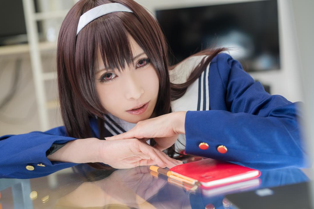 一世を風靡したライトノベル「冴えない彼女の育て方」、通称「冴えカノ」の人気キャラクター詩羽先輩。 学校のセットを使った再現度の高さに目を奪われます。