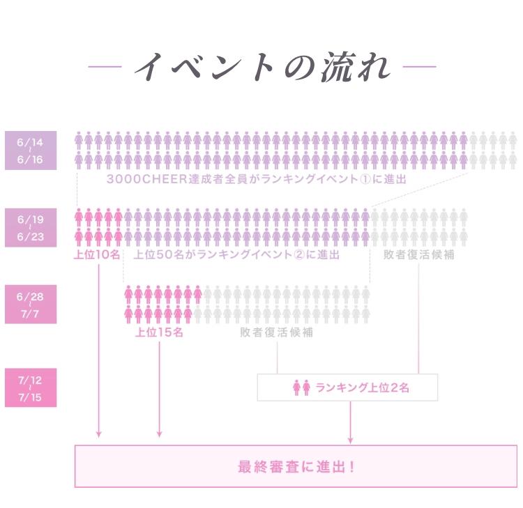 みなさんそろそろハートを押すのを辞めていただいて、今日の0時に備えてください!! ついに、始まります! 19日(水)〜23日(日)までの間CHEER数の順位が上から10名が最終審査進出決定! 上から60名が次の審査に進めます! 今日の0時の投稿をお見逃しなく!!!!(0)