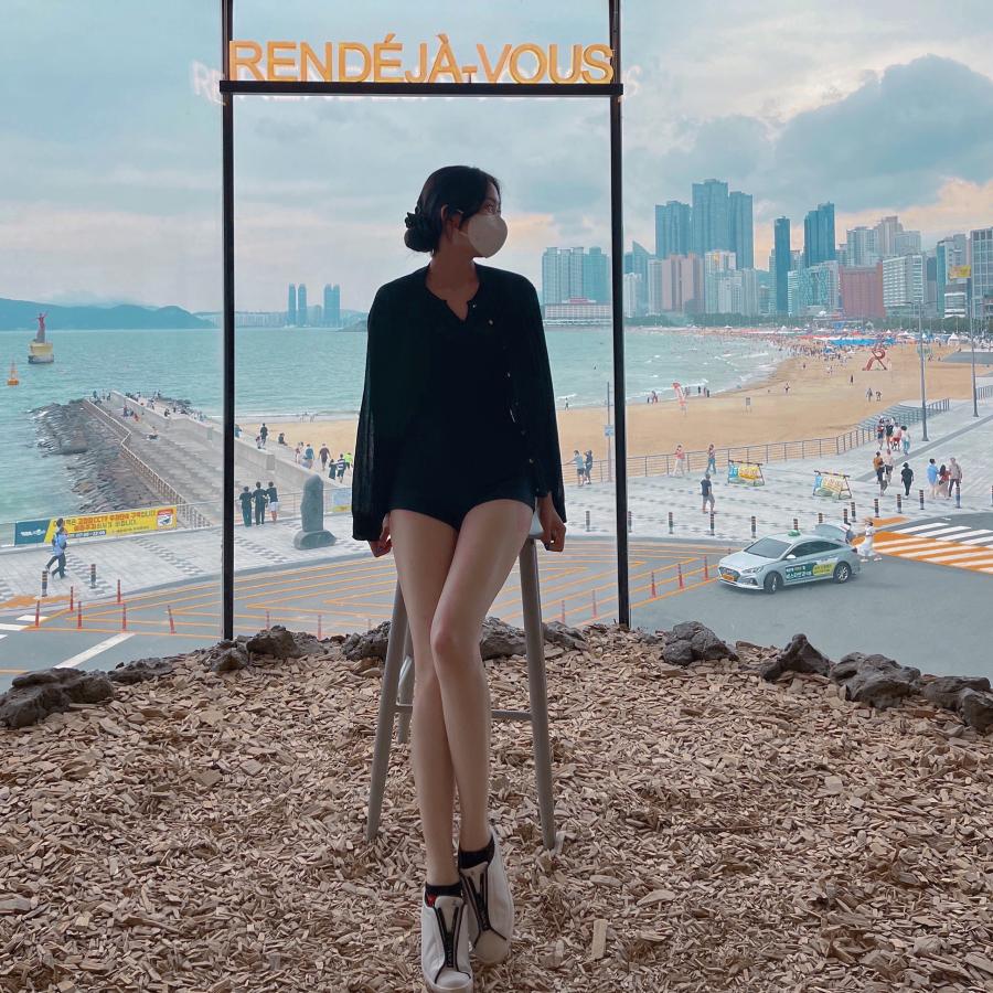 韓国の人気カフェ[RENDÉJÀ-VOUS]の釜山店☕️ 海雲台の海がよく見える、映えカフェです🖤(1)
