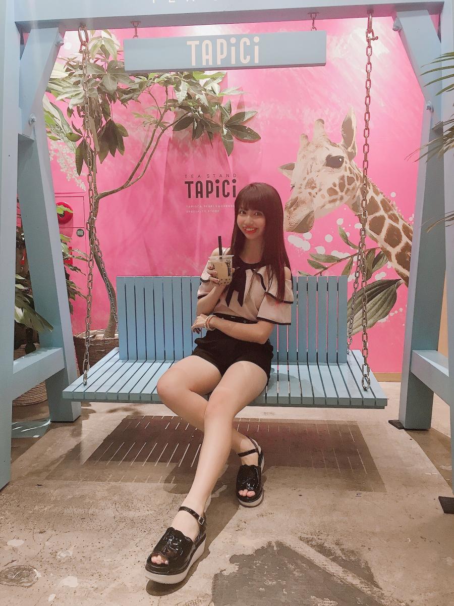 この前私の大好きなタピオカ💕を飲みに行ってきました〜🏃♀️ 初めて行ったタピオカ屋さんで店内もとても可愛かったです😚✌️️✨ おしゃれなブランコがあったのでそこで📸 また行きたいなぁ〜💭💖(0)