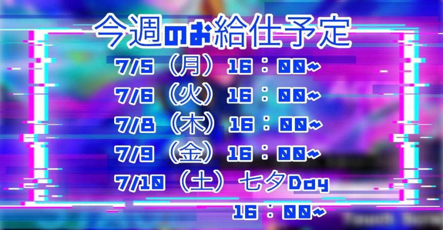 今週のお給仕予定!🗓🖋 七夕Dayは1日目のみ参加します!🎋🌟 今週も清瀬店にてお待ちしておりますので、自分の体調第一優先でよければくれあに愛に来てクレクレ〜🙏💕 。*⑅୨୧ おまけ ୨୧⑅*。 今回のくれあのちょこっと歌ってみたは最近ちゃんと覚えようと思った「比較症候群」をアカペラで🎵 寝起きだったのでキーを少し変えてるのと、まだうろ覚えの為少し間違ってるところがあるかもしれませんが大耳で聞いてくだい😅 ⚠️音量注意(0)