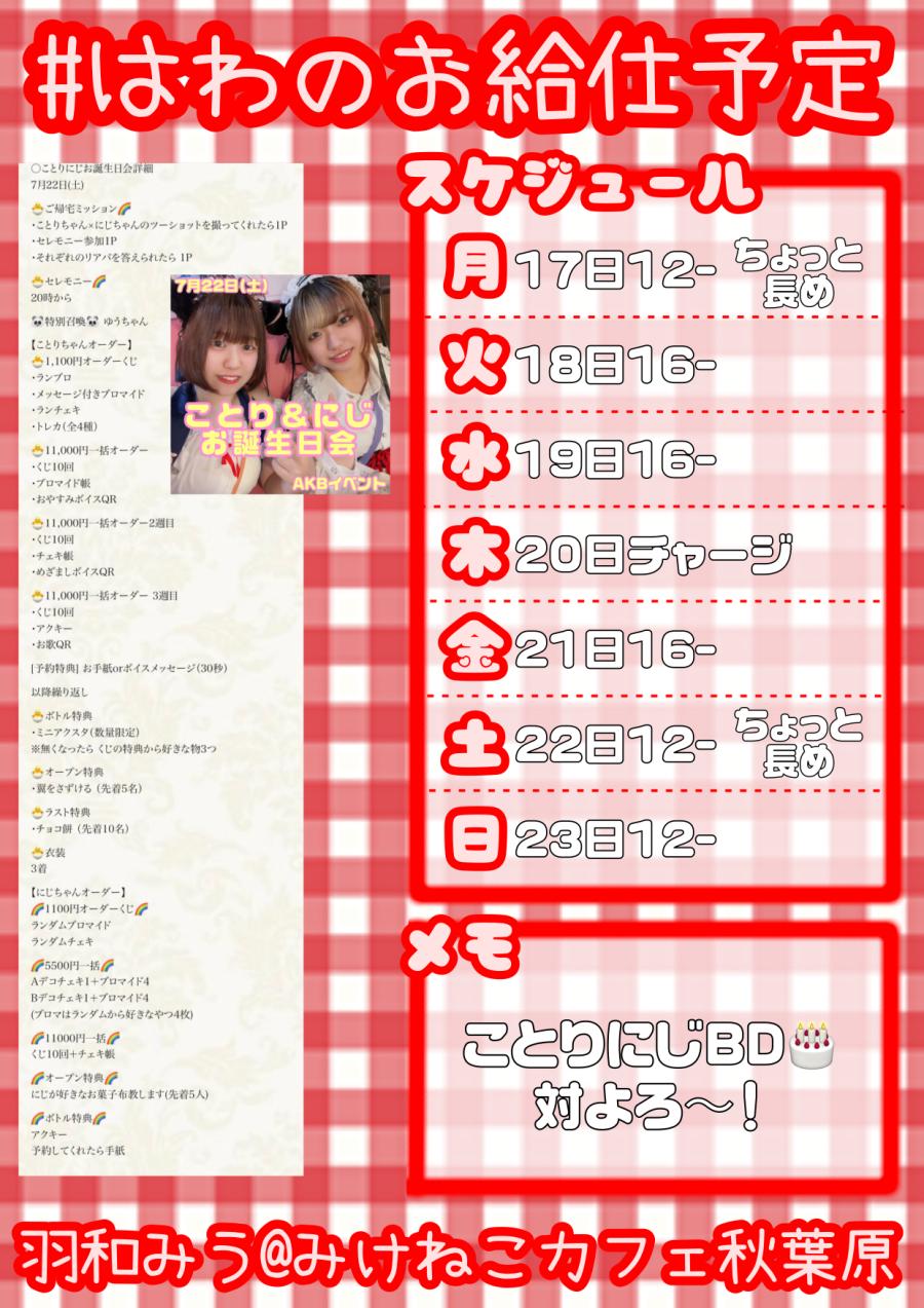 #はわのお給仕予定 今週もよろしくお願いします! ことりにじBD楽しみだね🎂(0)