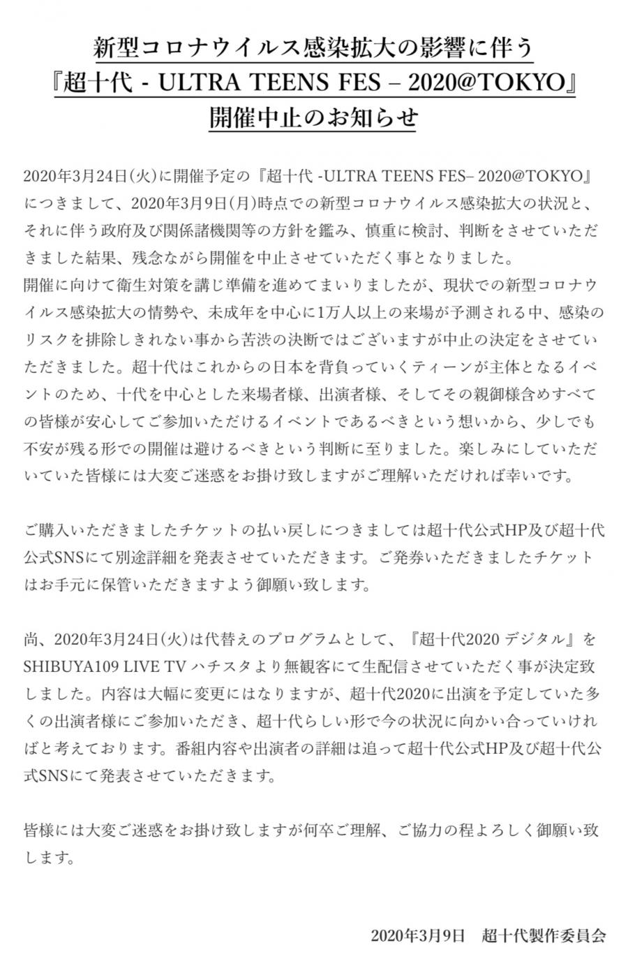 とってもながーいお知らせ。 昨日、超十代公式アカウントやHPでイベントについてのアナウンスがありました。既にご存知の方もいらっしゃると思うのですが、新型コロナウイルスの影響でイベントが中止という運びになり、代替え案で無観客、生配信での開催が決定されました。私が参加させて頂いているランウェイオーディションは継続で、当日も配信予定です。ご来場予定だった皆様には大変ご迷惑をお掛けしてしまいますが、生配信で皆様に晴れ舞台をお見せできるように、引き続き面接も頑張りたいと思います!運営の方々も苦渋の決断だ(2)