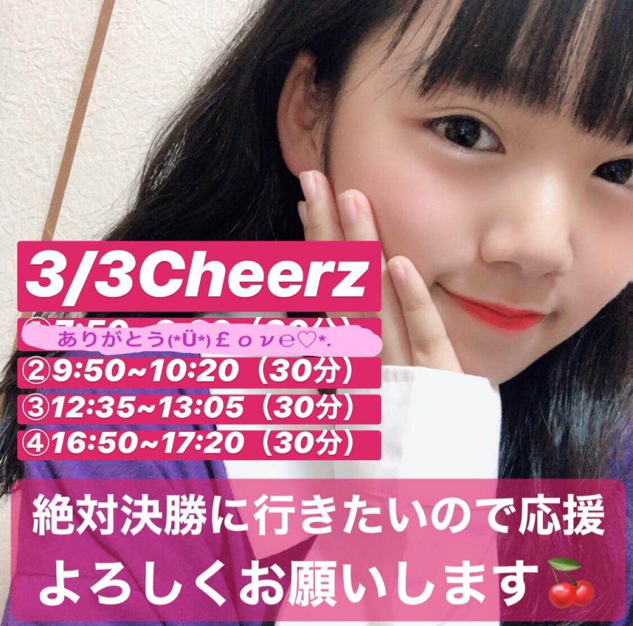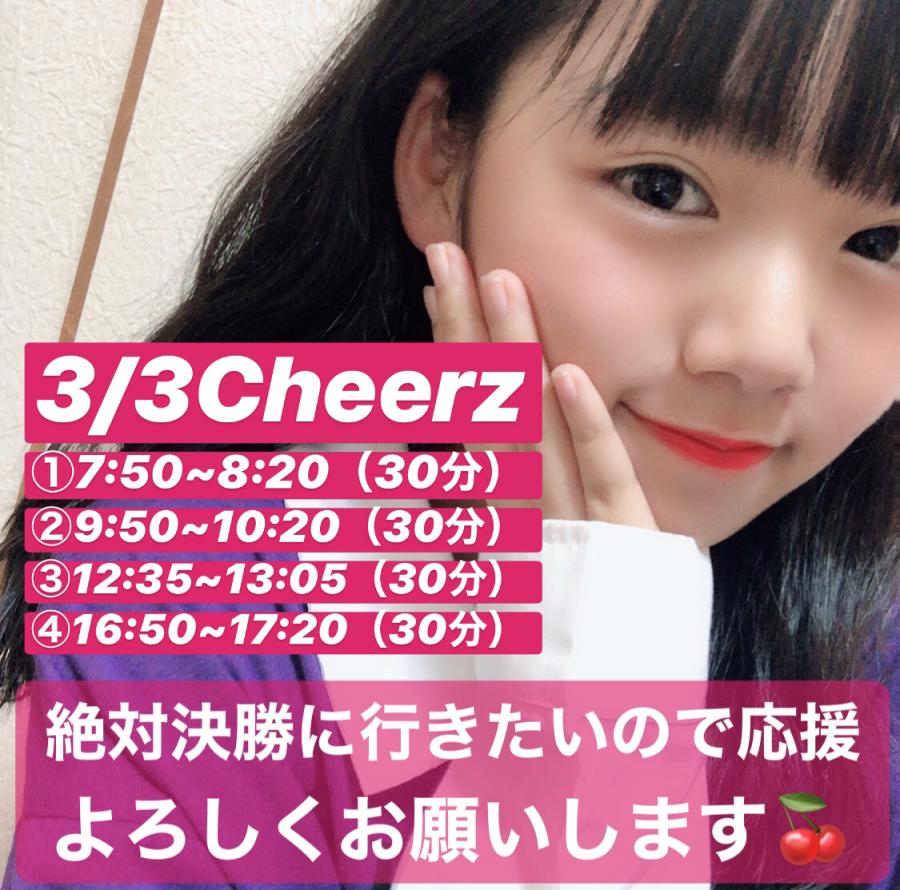 あと3分、0時からCHEERZ準決勝START🍒準決勝1位を目指して頑張るので応援よろしくお願いします٩(`・㉨・´)و オォォォ!!!ぜひみなさんのお気に入りにしてください( ఠ͜ఠ )♡(1)
