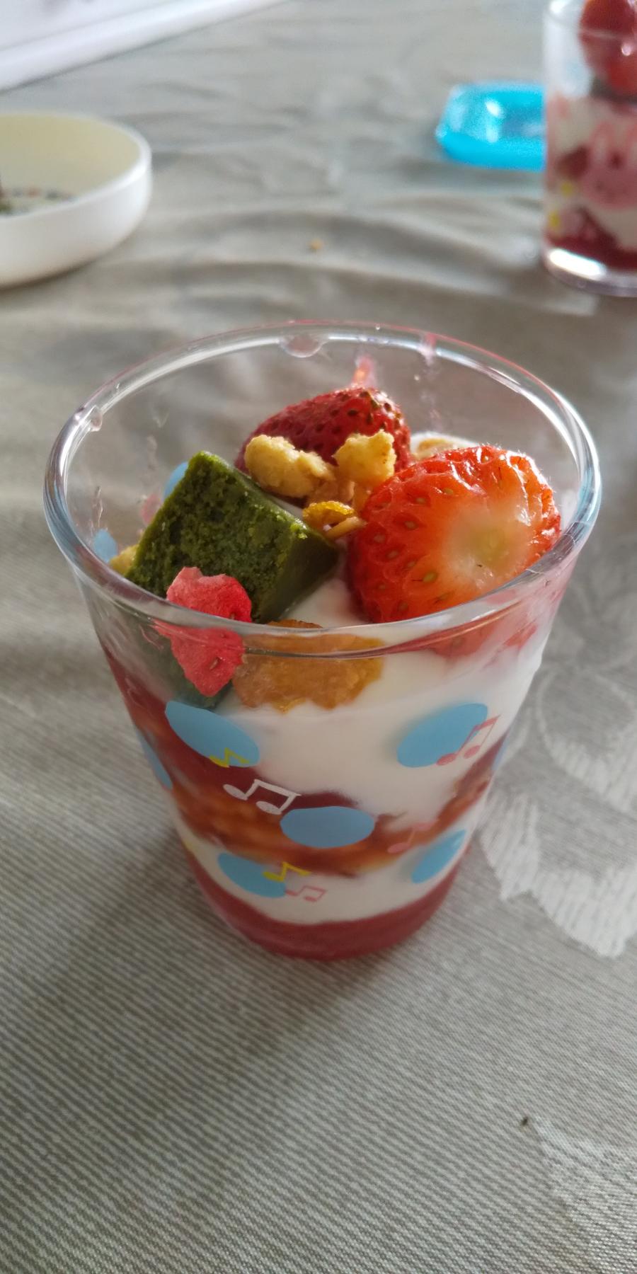 さっきのいちごでヨーグルトパフェが出来ました‼️(2)