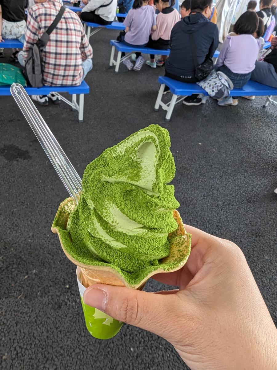 久しぶりのソフトクリーム🍦 抹茶の粉がかかってむせないように食べました😊✨(2)