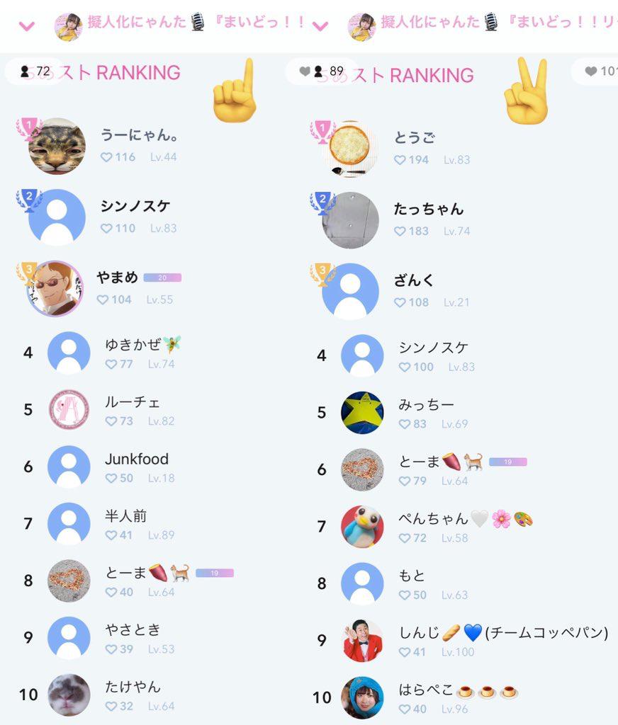 ⬆️お昼枠1部と2部のファンランキング 平日の真っ昼間からほんと楽しすぎやん🤣🤣 応援と一緒にたくさん笑かしてくれて本当にありがとう☺️ やっぱり楽しくが1番だよね! この後もまた配信やるよ〜!夜の部突入🌃🌙*゚ 引き続きがんまりまつ!!!✊🏻 ̖́-(0)