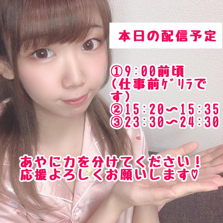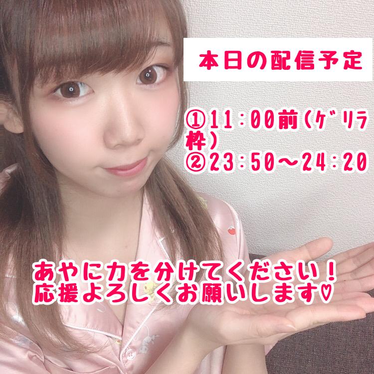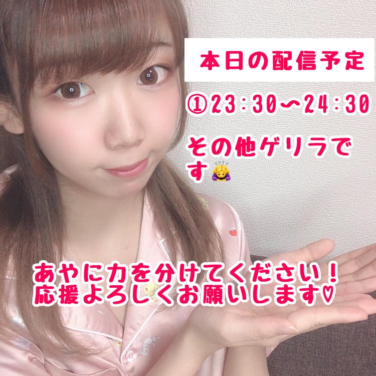 こんばんは😉 金曜日ですが、明日が今週ラスト勤務のあやぷぅです😂 チアチア応援本当にありがとうございます💖 配信予定変更です!23:30~23:45までになります! よろしくお願いします🙇♀️(1)