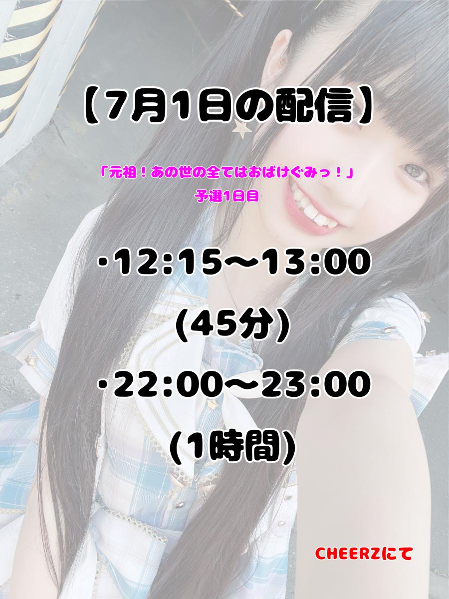 明日の12時から「元祖!あの世の全てはおばけぐみっ!」のオーディションが始まります! その1日目の配信時間は、 ・12時15分〜13時00分(45分) ・22時00分〜23時00分(1時間) です! CHEERZは無料投票が出来ます! ログインしたら右下の♡を沢山押すだけ! ぜっっっったいに上位5名に入って決勝に行きたいです!! 基本的には1日に2回の配信予定ですが、様子を見て増やそうと思います! 予選は5日の23時59分まで! よろしくお願いします!🙇♀️(0)