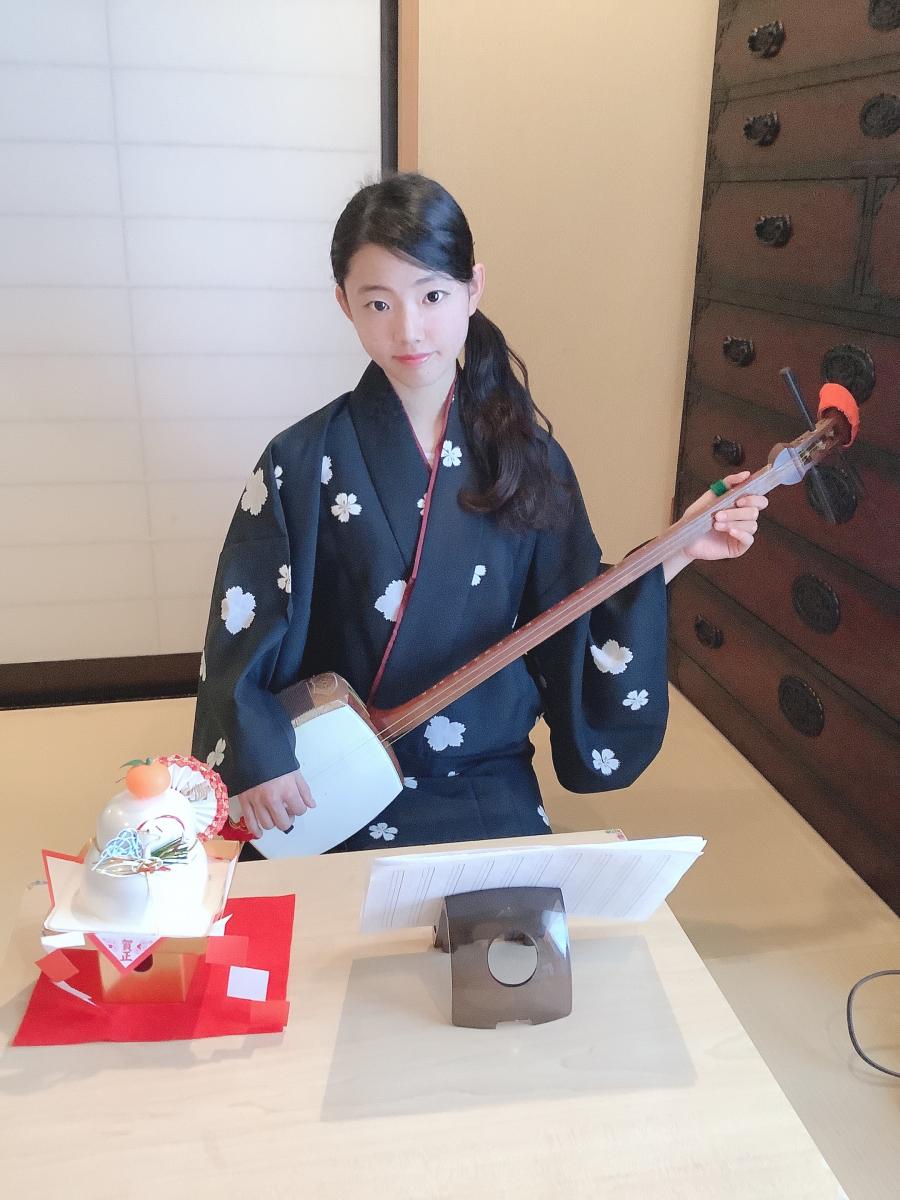 お三味線のお稽古。二部式のお着物です🎍🎌(4)