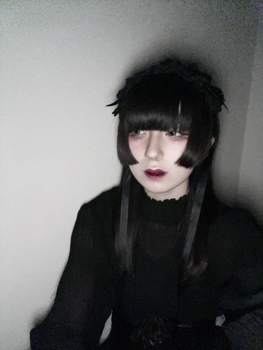 初めまして🌙*゚ こんにちは🥀水月の血より赤色🩸担当Na(ナト)です twitter⇒ https://twitter.com/suigetsu_nato LIVE予約&詳細http://bit.ly/suigetsu_live 今日はヘッドドレスつけてLIVEしたよ🥀 久しぶりに着けたんだけど 本当は顎の下で紐結ばなきゃ行けないけど 苦しいの嫌いだから縛らないでピンで止めてたら まことさんが髪の後ろで結んでくださった!!!! ありがてぇ😂😂😂🙏🙏🙏 これでライブでも紐が邪魔になら(0)