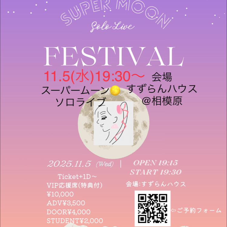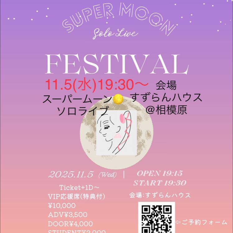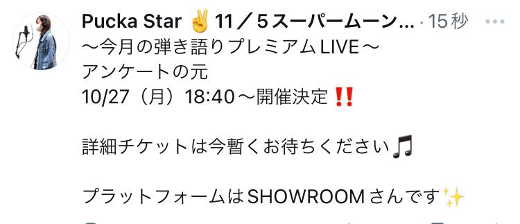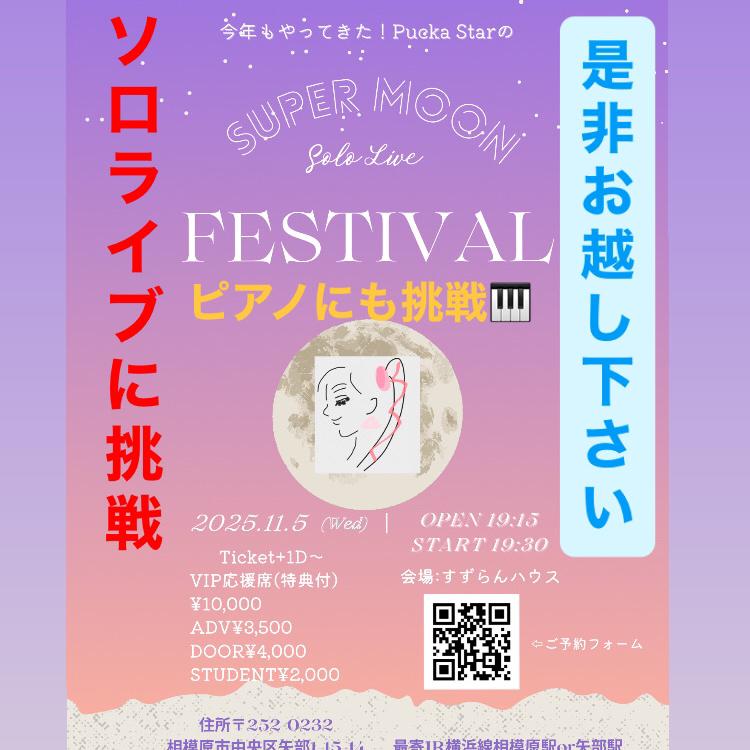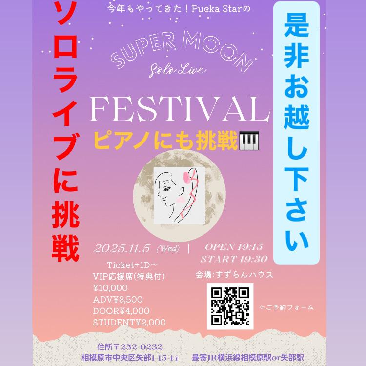 LIVE情報 11/5(水)スーパームーン🌕ソロライブ 19:30スタート 場所 相模原すずらんハウス チケットはこちらhttps://puckastar.thebase.in/(0)