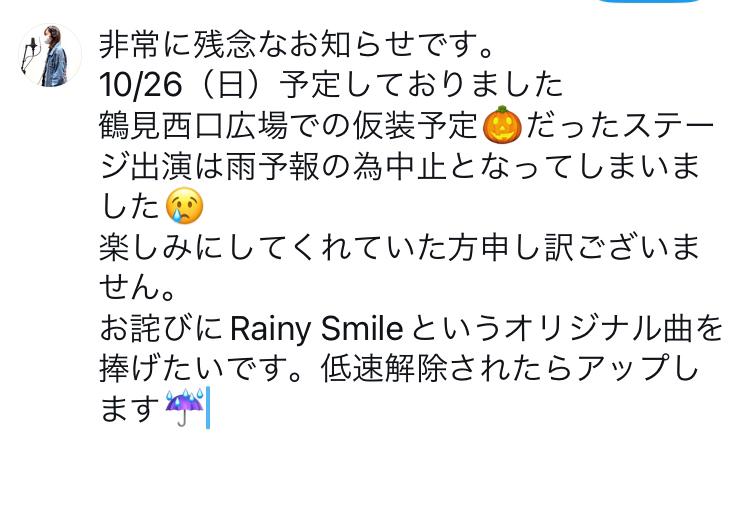 明日は楽しみにしていた鶴見屋外ステージ出演が 雨天中止となってしまいました。 楽しみにしててくれた方ごめんなさい😢 この曲で楽しい気持ちになって頂けますように♪ 雨の歌を作ったオリジナルで Rainy Smileといいます。よろしくお願いします❣️ https://youtu.be/qoIeDPLG_y0?si=zTPSQfkWcVnJEwrs 低速モードにつき、Wi-Fiエリアから編集、アップロード頑張ったので即座に投稿😅 いつもは21時にアップすることが多いYouTube♪ 併せてよ(0)