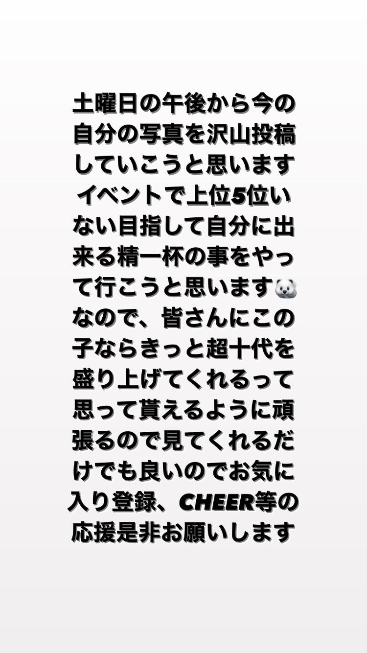 CHEER等よろしくお願いします✨ 本気で上位5名狙っているので応援して頂きたです🐻❄️(0)
