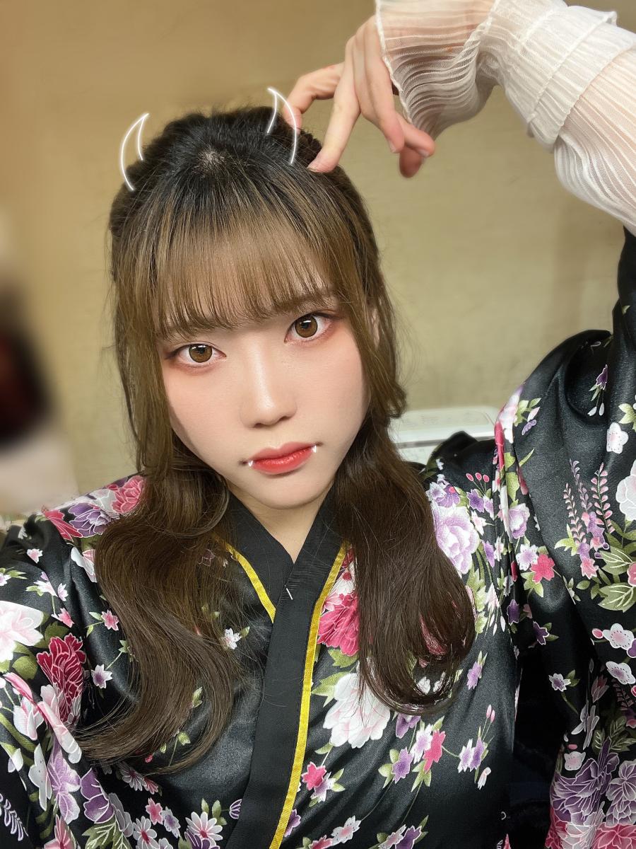 こんばんは🌟 ハーフアップのお団子 みたいな髪型した時のやつ👹 正面からの見え方に関してはなかなか気に入っていました オニの日でした(2)