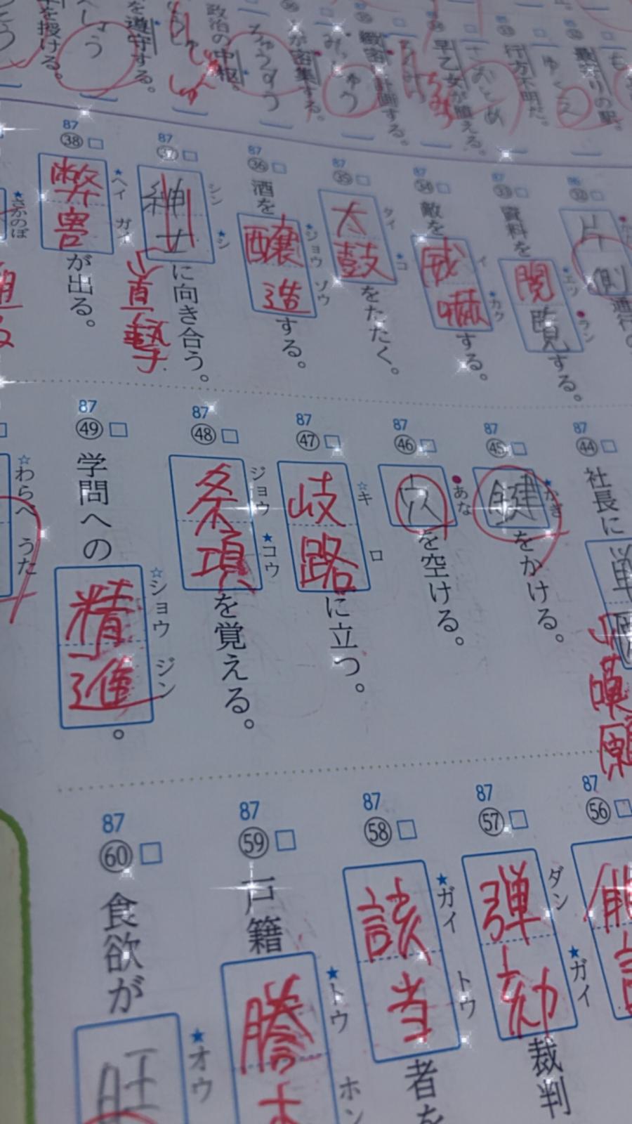こんばんは! 国語の課題終わってないことに気づき漢字のページやってたんですが、、やばい全然覚えてないよ💦でもここのページが今回のテスト範囲じゃないのでとりあえず今はテスト範囲の漢字を頑張ります。。 テストは今週の木金です🥲🥲今日実力テスト終わったばっかりなのに、、受験生辛い(2)