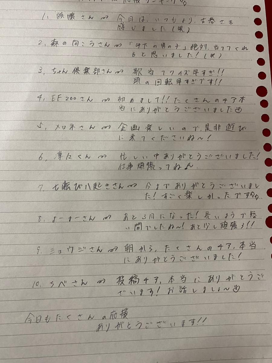 今日もたくさんの応援ありがとうございました‼︎ 歌詞で曲当てクイズすごく楽しかったです‼︎(7)
