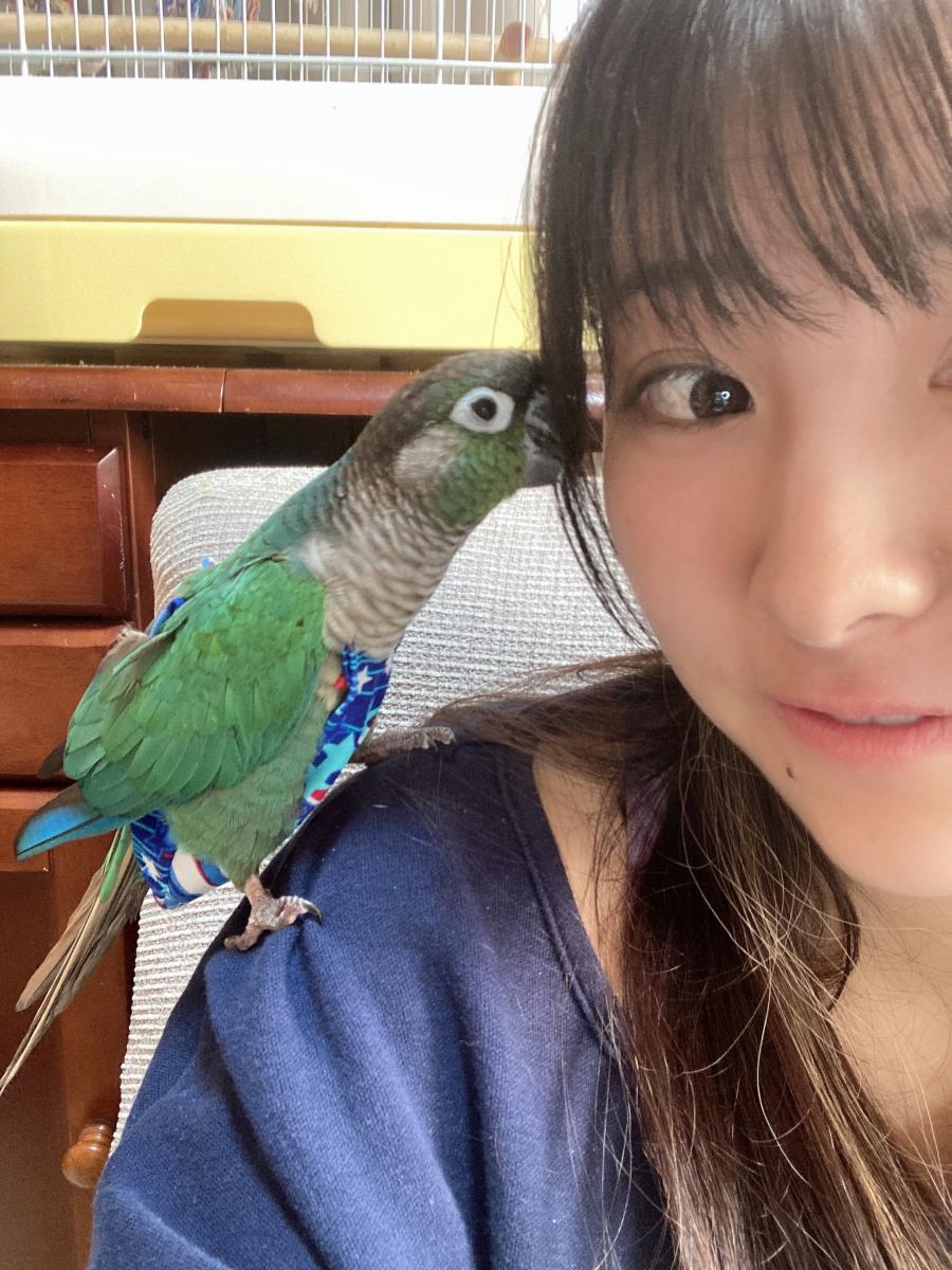 インコと弾き語り配信♪ いつもよりちょっとだけオシャレしました☆ チアチア、お気に入り、コメントよろしくお願いしますm(_ _)m 休日はめちゃ可愛い格好したいなぁ〜(0)