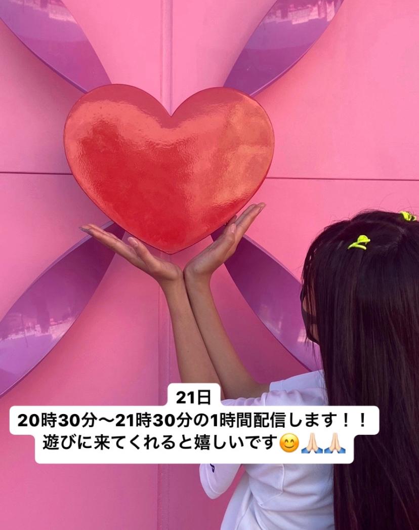 さっきは1時間LIVEありがとうございました!! ほんとに楽しすぎた!!😂😂 今日の夜は、9時くらいから1時間したいと思います!💗 また楽しいこと色々するので、みんな遊びに来てくださーーい!!💖💖(1)