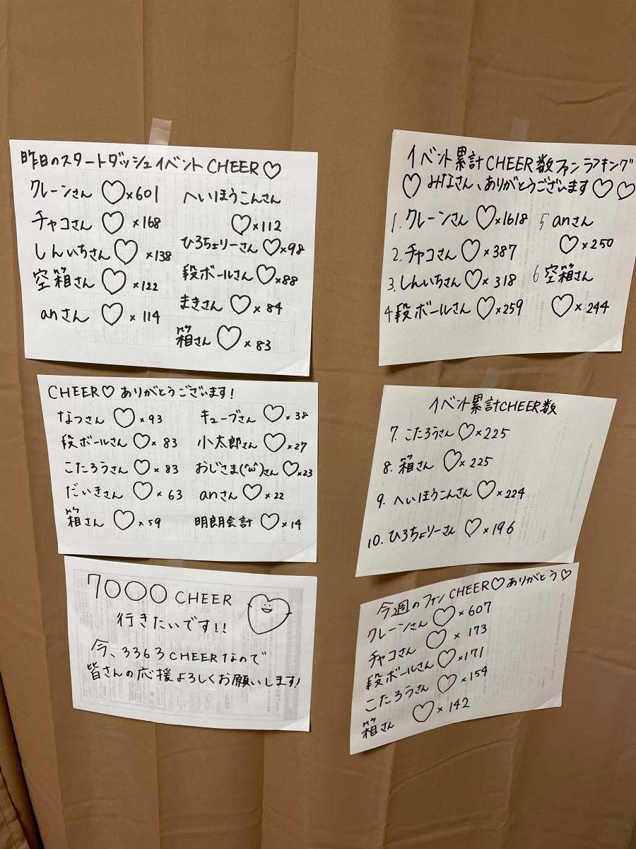 いつもCHEERありがとうございます! おかげで4位まできております! 今日の配信で7000チアにいって上位2位にいきたいと思ってますので、ぜひ皆さんのお力をお借りしたいです😳🙇♀️🔥 よろしくお願いいたします✨💐(0)