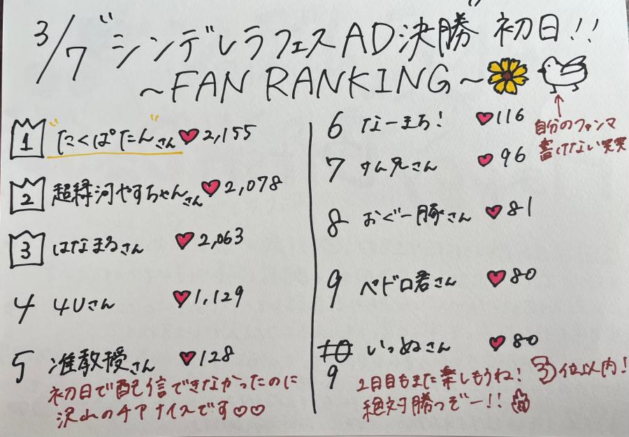 シンデレラフェスAD決勝2日目の配信予定!! 3位以内目指して頑張る❤️🔥(0)