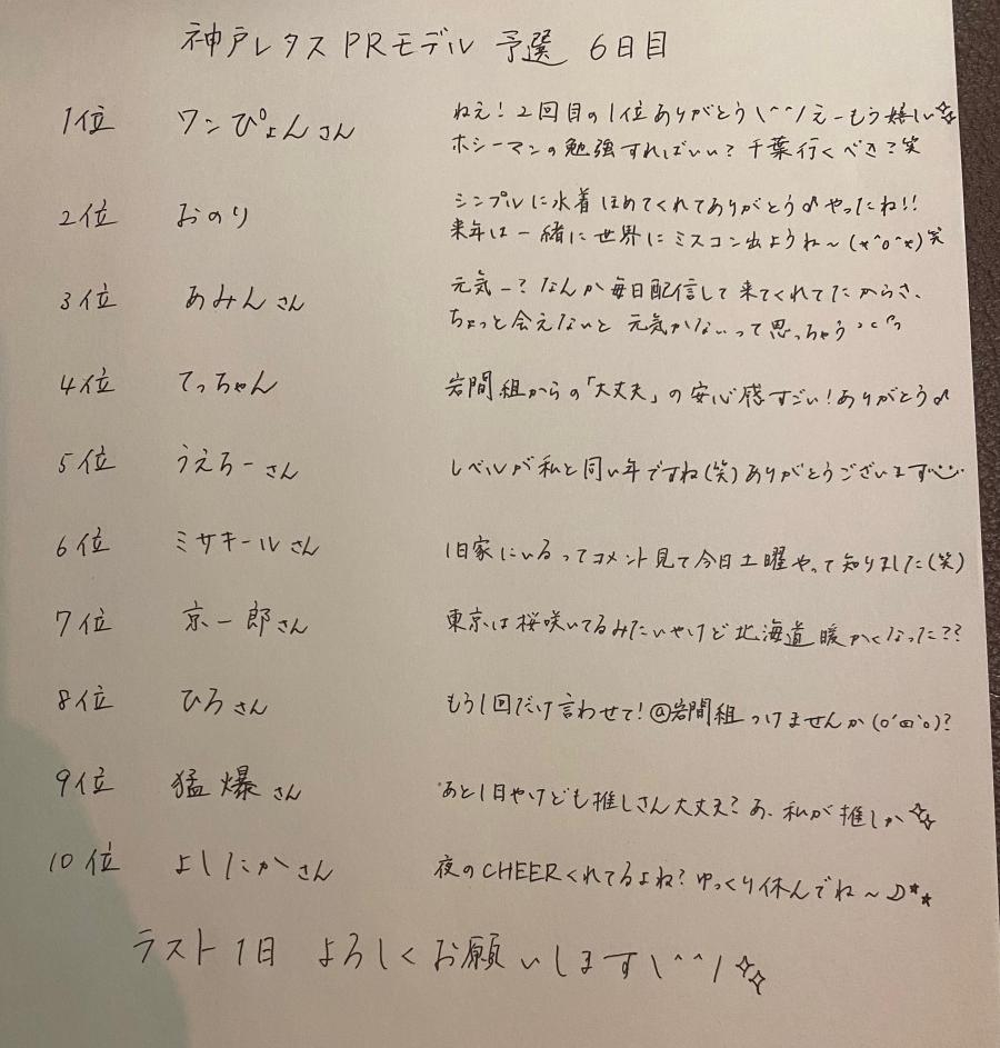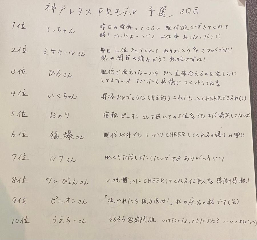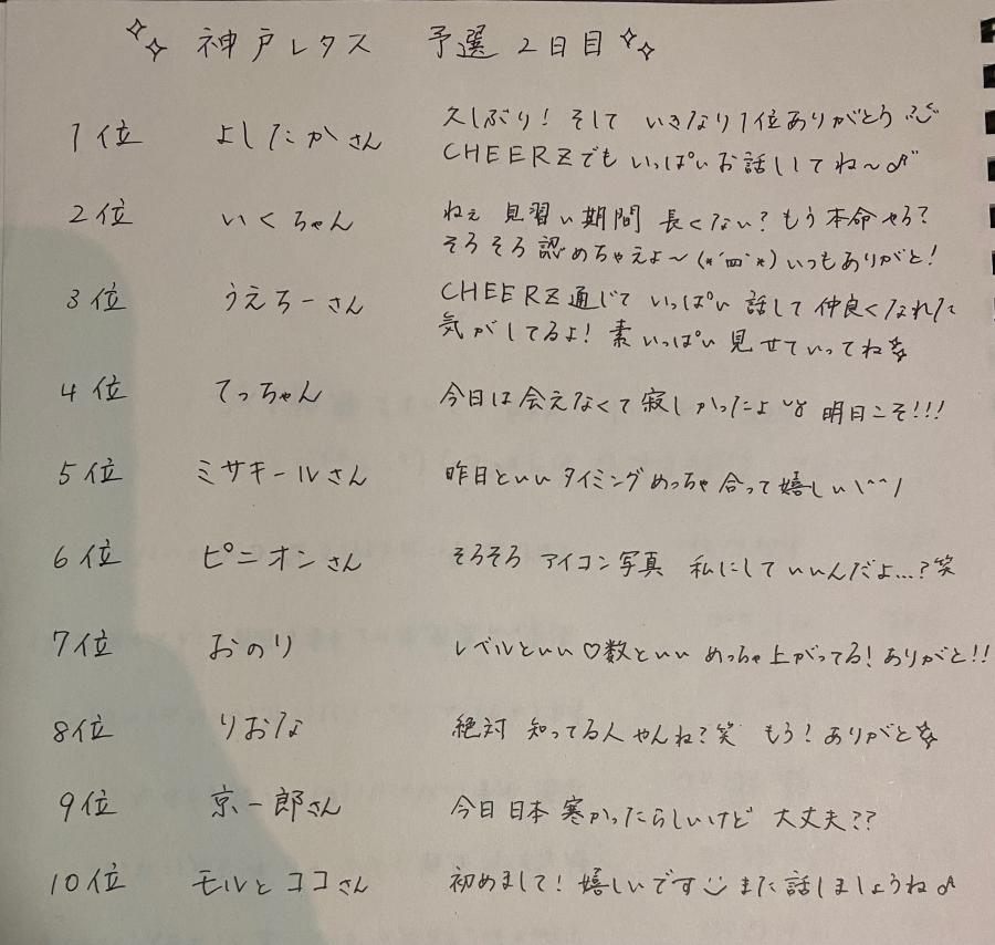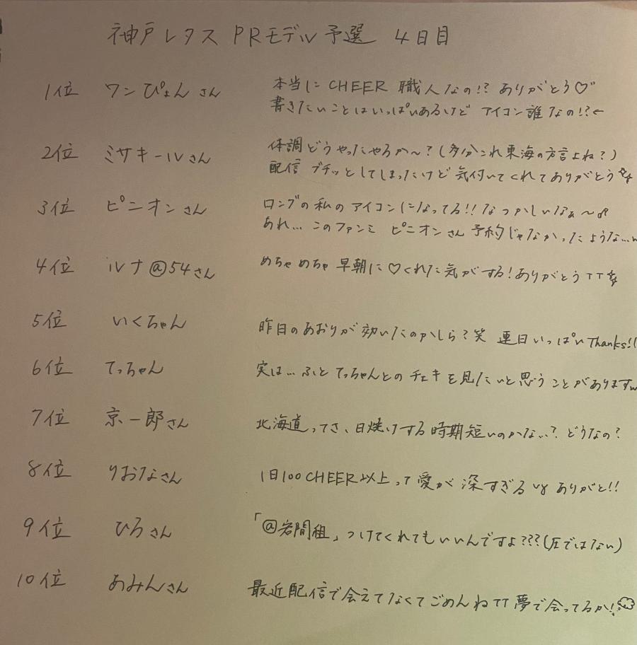 帰りのバス乗ったから コソコソ配信出来るのでは😳 と思ったら時すでに遅く 予選終わってました😇 でも予選2位通過ありがとう〜〜〜❤️❤️❤️ 本戦は1位確定で 2位以下から2名選出予定なので 1位目指して頑張ります(๑•̀ㅂ•́)و✨ またお伝えするので 今後もよろしくお願いします🍀 初めてのCHEERZからのお仕事 獲れるように頑張るぞー!!! 皆ゆっくり休んでね♪ 私は今日の夜ご飯はプルコギと聞いて ワクワクしながらバスに乗ってます😊笑(2)