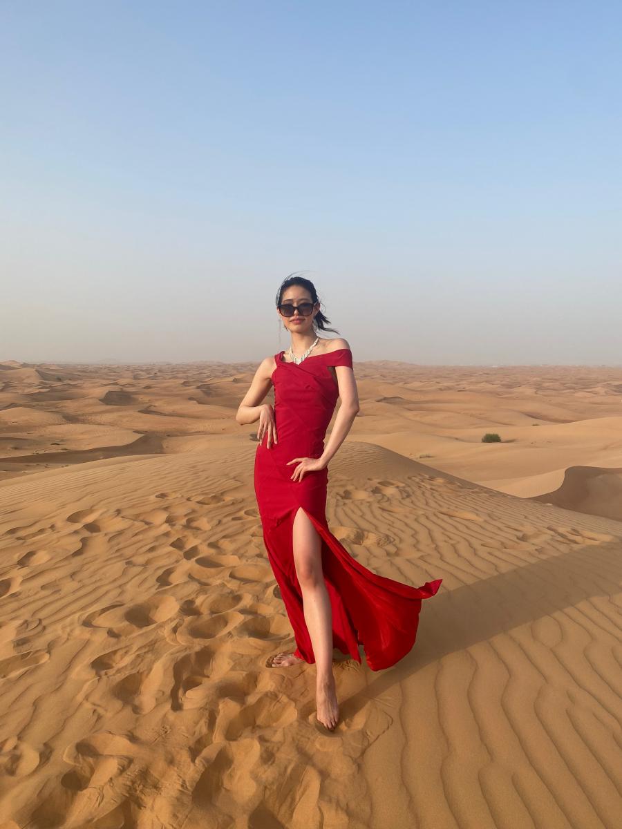 配信途中で終わっちゃってごめんね🙇♀️ 来てくれた皆さんありがとうございました✨ 水着撮影終わって またドレスに戻って撮影してます📸 ドバイの砂浜は貝殻が多くて痛かったです🥲 でも綺麗で素敵な場所だったよ〜💕 水着の写真はサングラスかけてるけどこれで許して(3)