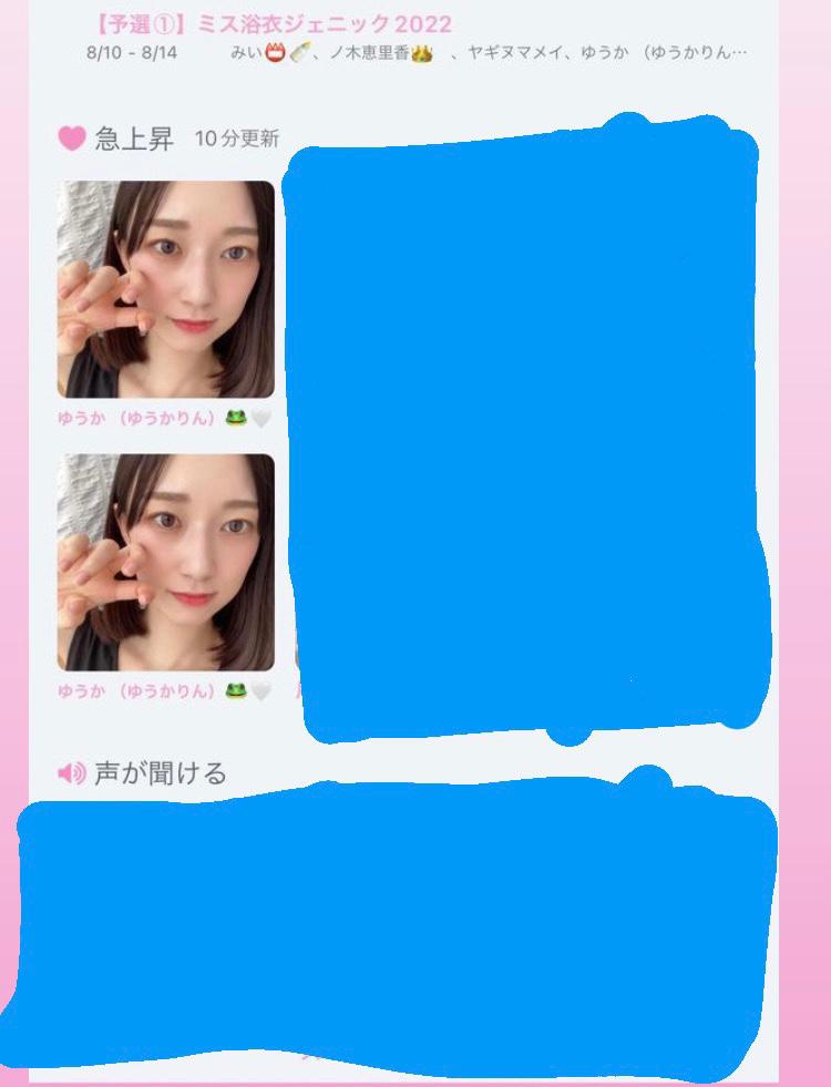 こんにちは😆 配信来てみてね❕お気に入り登録お願いします💕︎ チームゆうかりん募集中です🫶 ihme表紙モデルオーディション応援ありがとうございました! ファンマーク🐸🤍 ミス浴衣ジェニック2022 🥉✨️ ブルダックPRモデルAD 審査員賞✨(新大久保駅広告掲載済) MEDIHEAL広告モデルAD 決勝5位 Lil Ambition 決勝🥉✨ 審査員賞✨️(渋谷巨大広告掲載済) ihme issue15 2位🥈 審査員賞✨️