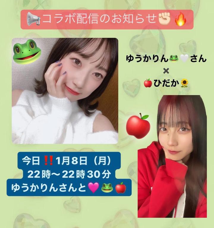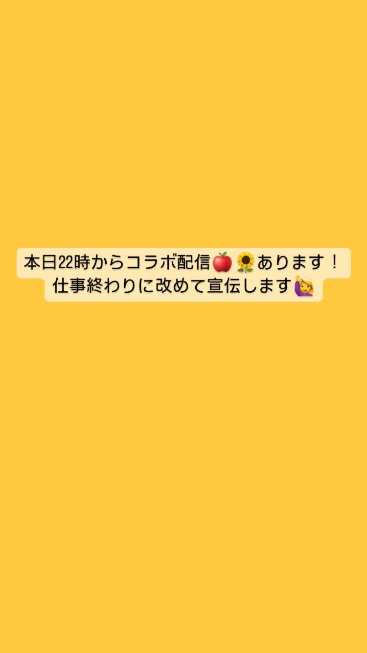 【コラボ配信のお知らせ⋆͛📢⋆】 取り急ぎ!! また改めて宣伝しますが、本日22時からひだかちゃんとコラボ配信です!🍎🌻 ガチイベ参加中なのでぜひ応援お願いします❣️(0)