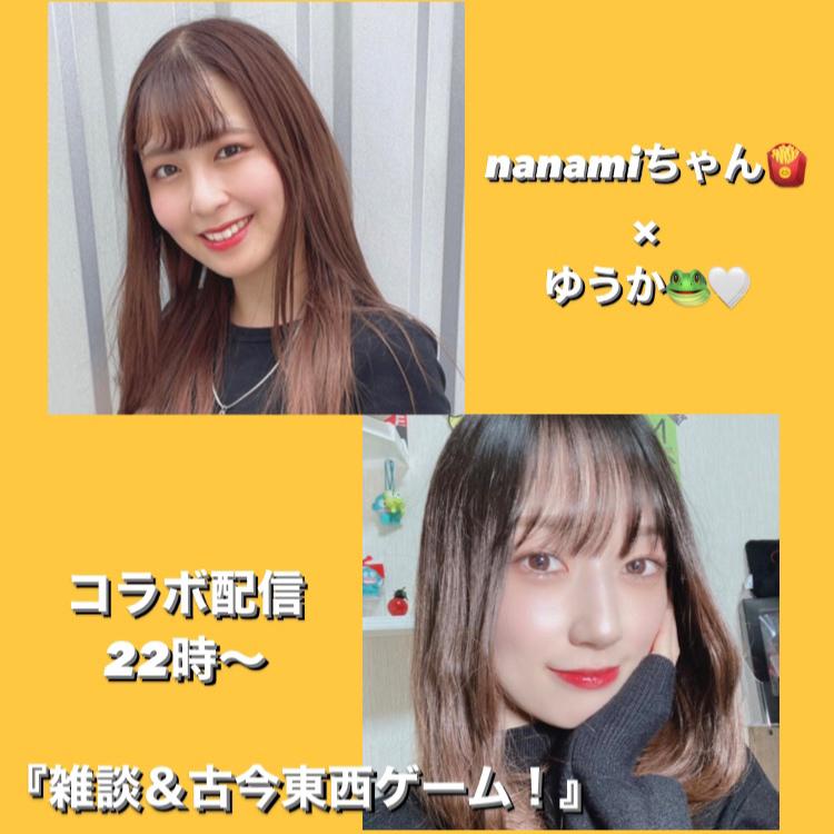 【コラボ配信のお知らせ🍟×🐸🤍】 こんにちは!! 本日22時からnanamiちゃんとコラボ配信します! 私はコラボ経験がそれほど多くないのですがその中でもnanamiちゃんは何度もコラボしていて仲良くさせていただいている配信者さんの1人です😉💕 そんなnanamiちゃんと今回またコラボできるのがめっちゃ楽しみです✨ 内容は雑談しながら古今東西ゲームをしようと思ってます🙋♀️ お題も考えているのですが何かこのテーマでやって欲しいというのがあれば配信でコメントお願いします! もしかする(0)