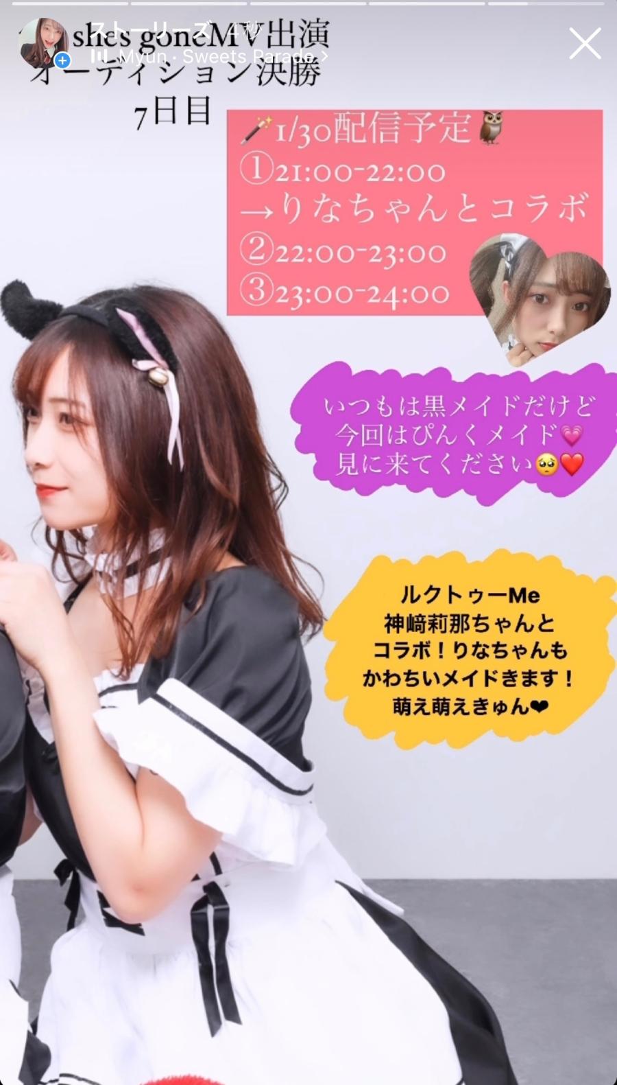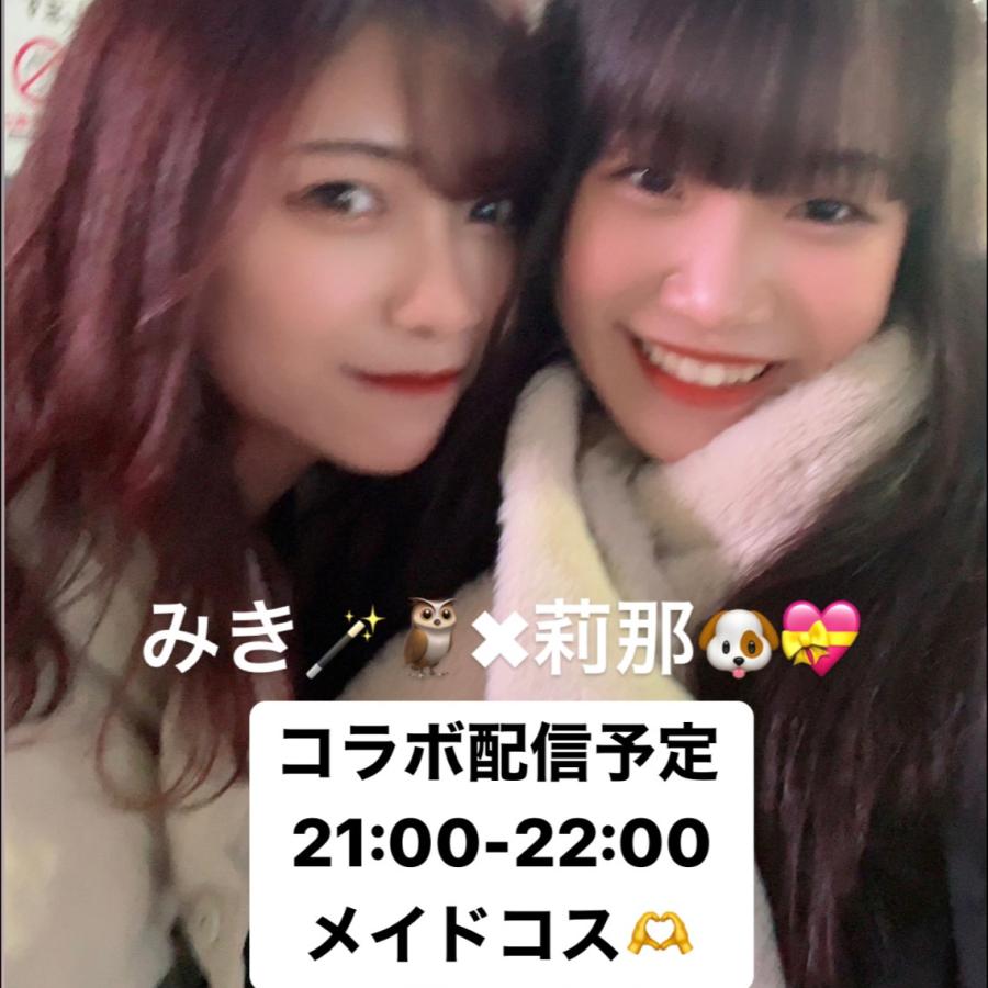 21時からは アイドルルクトゥーMeの 黄色担当、神﨑莉那ちゃんとコラボ配信!🎤💛 かわちい大事なおとももちです! 2人ともメイド着るので 萌え萌えきゅんしちゃって下さい!! 高校生と23歳のメイドは 普通にやばいけどね、🤣 がんばりますっ!! 待ってまーす!🪄🦉✖️🐶💝(2)