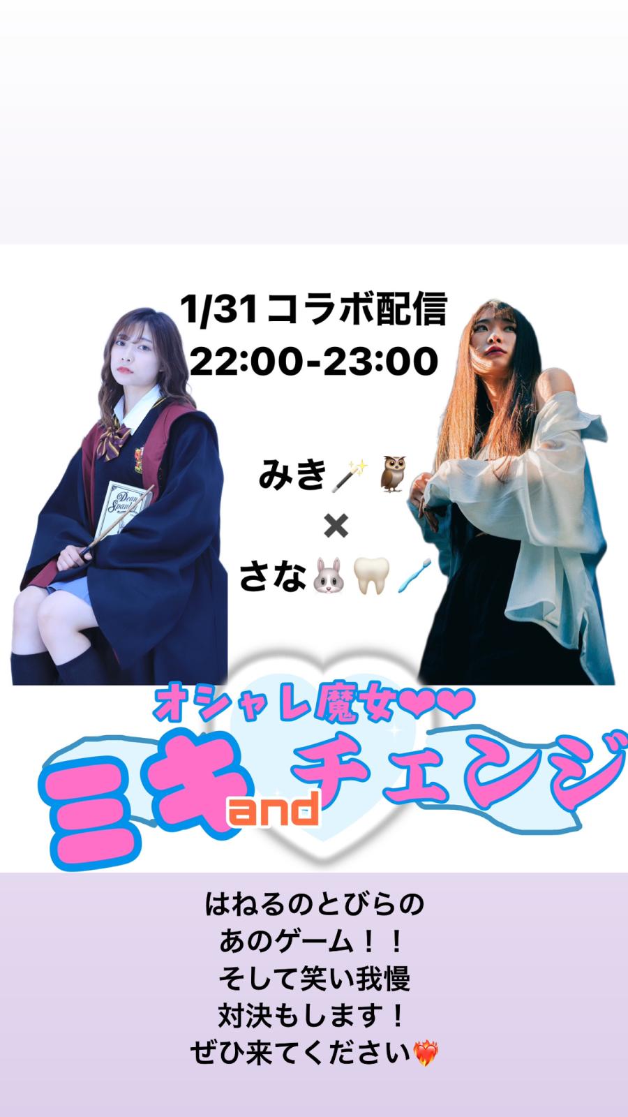 22:00からはわいさなやとコラボです!! みきあんどちぇーじ!!! はねるのとびらのあのゲームをします! そして笑い我慢大会もやると思います! また大騒ぎにはなると思いますが 来てくれると嬉しいです☺️(4)