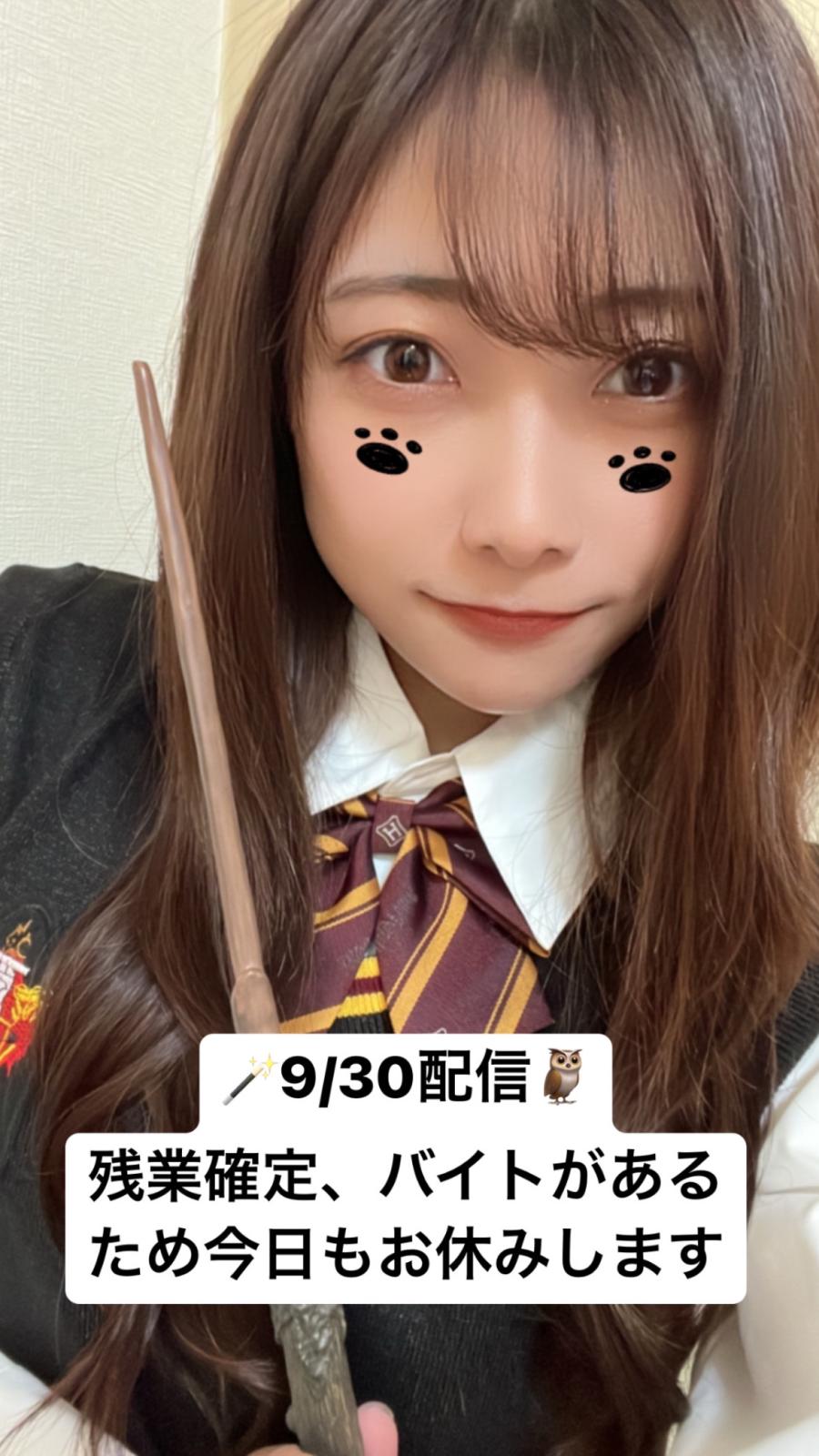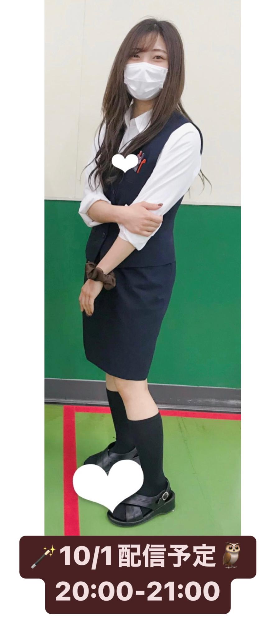 おはようございます☀ 今日こそは2日ぶりに配信するよー! 10/1本日20時から1時間! ぜひ来て欲しいな🪄🦉 会社の制服がもう廃止になって 来月には作業着になっちゃうの🥺 記念に載せとくね✌️ エクステつけてるときの 半年前くらい前の写真だけど笑 いつもは下の方でお団子が定番やね🤭 久々配信待ってるね🪄🦉(12)
