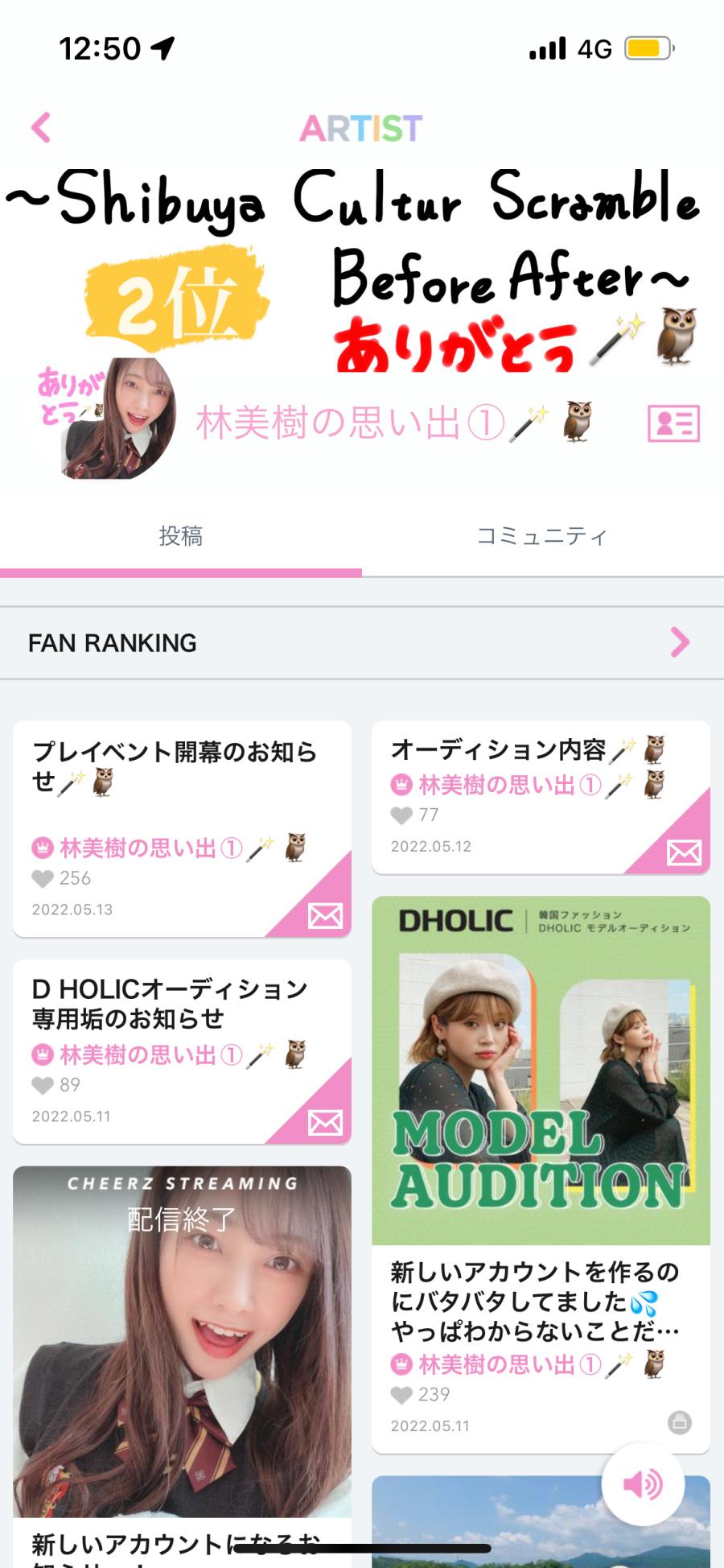 みなさんこんばんは!🪄🦉 ちょっとした連絡です! 私DHOLICで2回目のオーディションになります。 そのためアカウントが2つあります。 DHOLIC終わったら前のアカウントに戻ろうと 思ったのですが、このアカウントをメインで 毎日配信していこうと思います。 前のアカウントは思い出①として 残していこうと思います。 自撮りとか結構載っているので まだお気に入り登録してない人は 見てみてください^ ^ 久々にログインしてみたら DHOLICのオーディション中も 古垢の方にまでチアしてくれて(12)