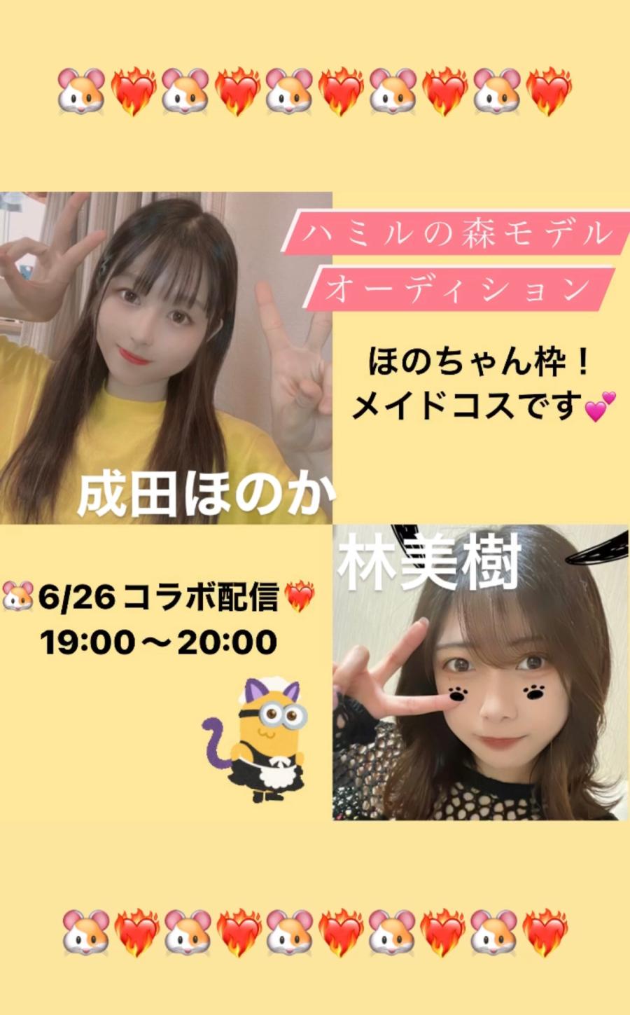 今日の配信の連絡です!!🪄🦉 ハミルの森PRモデルオーディションに参加中の 成田ほのかちゃんとコラボ配信です! 19:00〜20:00メイドコスするから見に来てね?🥺❤️ ほのちゃん枠なのでお気に入り登録して 待っててね〜!🐹❤️🔥 そのあと20:00〜20:30美樹ちゃん枠で そのままメイドコスです配信します! 待ってます╰(*´︶`*)╯♡(2)