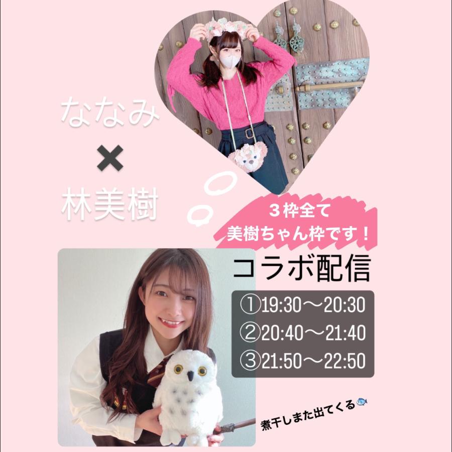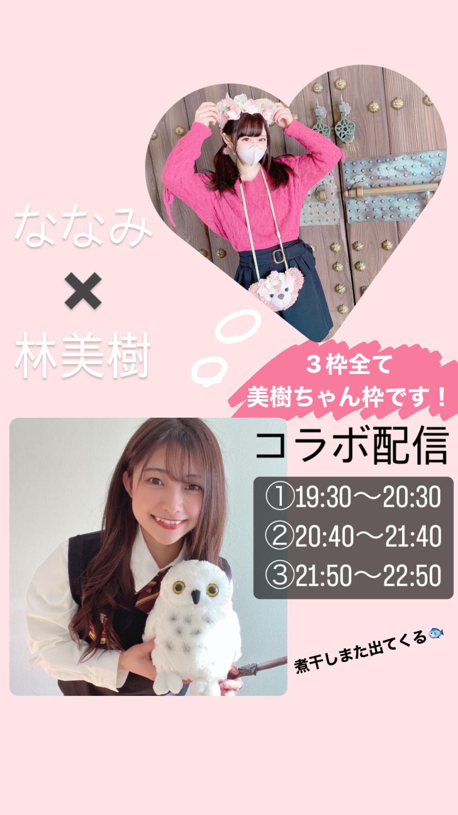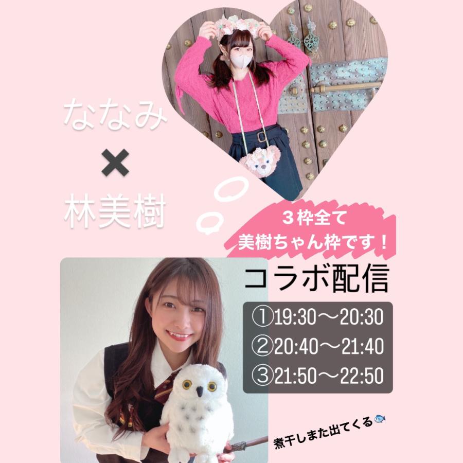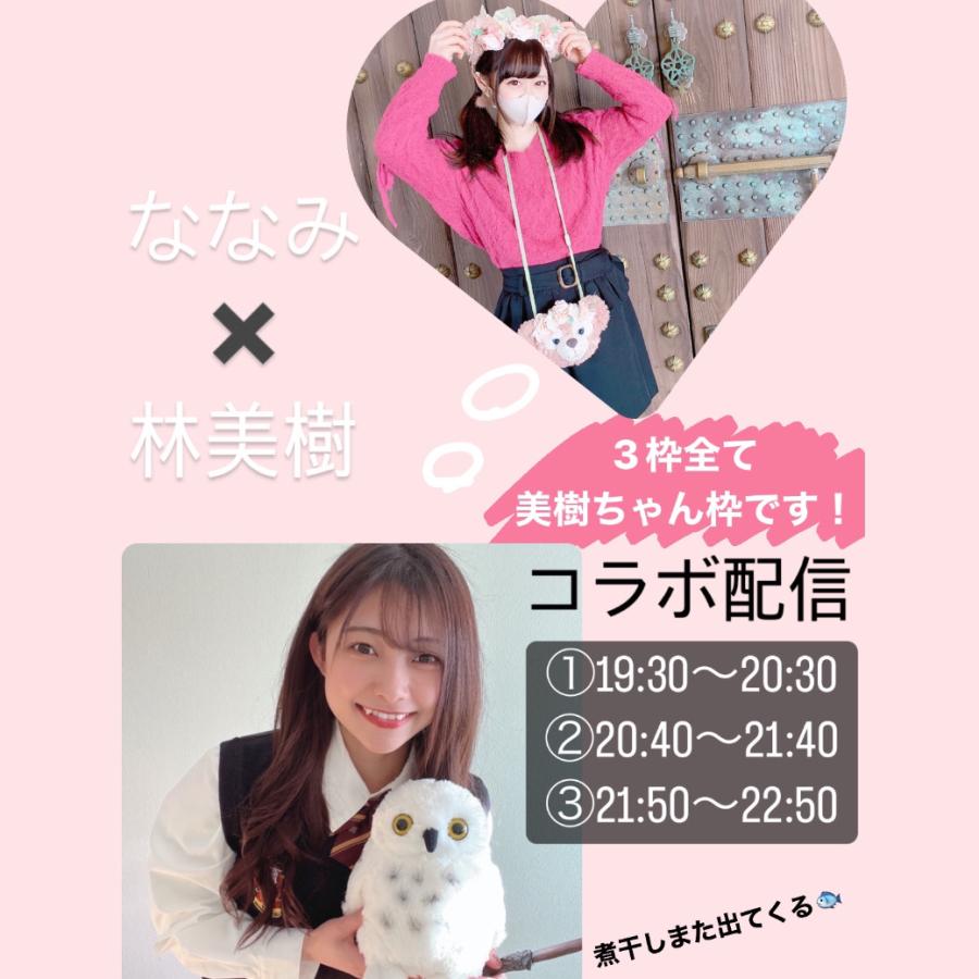 🪄6/8ななみんとコラボ配信!!🦉 またまたあの煮干しだいすきなななみんと コラボ配信が決定しました!!🐟💕 6/8本日19:30〜22:50の間の3枠です! 全てわたしの枠で配信します✨ ①雑談+日本語禁止どっちのが英語しゃべれてる!? ②ななみん企画の美樹ちゃん紹介😻 ③煮干し、ユニバ撮影 +罰ゲームで逆立ち+パンスト芸人 わたしたちを知ってる方はわかると思いますが 予定通りいく気があまりしません笑 多少の時間変動はご了承下さい。 絶対楽しいに違いない!! 沢山のご来場お待ちして(4)