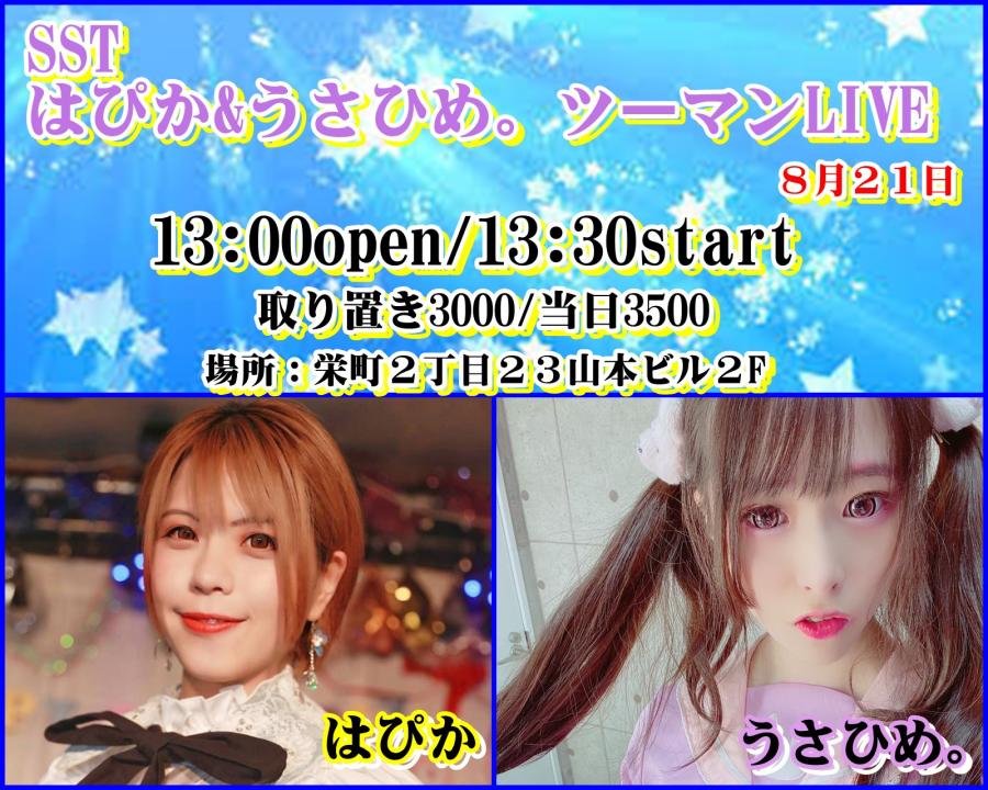 8/21㈰はぴかちゃんとツーマン🐸🐰 ❁⃘ツイキャスプレミア配信もあるので宜しゅう https://twitcasting.tv/sst_channel/shopcart/176853 ✡️27㈯初東京LIVE ※🚨関東方面でのLIVEあんまりないから関東の方も お会いしたい❣️※ ✝️28㈰HOD RODさんでLIVE ❤️🩹9.18㈰うさひめ。 生誕🐇 ↓↓らいゔの ご予約↓↓ †予約契約https://docs.google.com/forms/d/1F8okVsCBxq3ddJ2y(0)