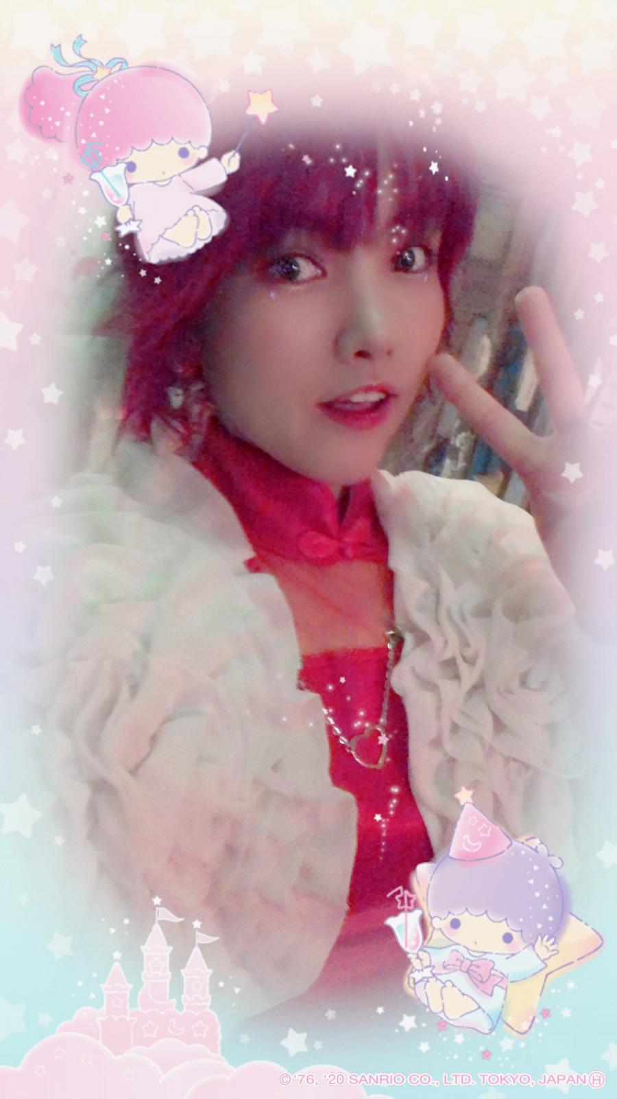 キキララ可愛いなぁと思ってスタンプ使ったらなんだかぺえさんみたい⁉️になった🤣 赤髪昔したことあるんだけどブリーチしなかったから真っ赤って感じにはならなかったんだ〜😜 こんくらい赤いのやってみたいかも❣️ピンク髪とか〜😘(0)