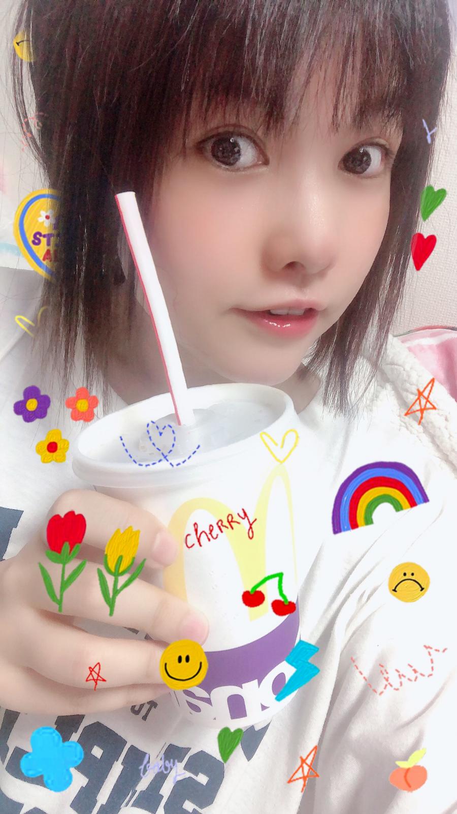 (*´∇`*)ノ❀.コンニチワ〜 良い1日を〜🍀✨ 久々にコーラ飲んだ〜やっぱ美味しい😋❣️ この写真めちゃめちゃ髪短く見える😳(0)