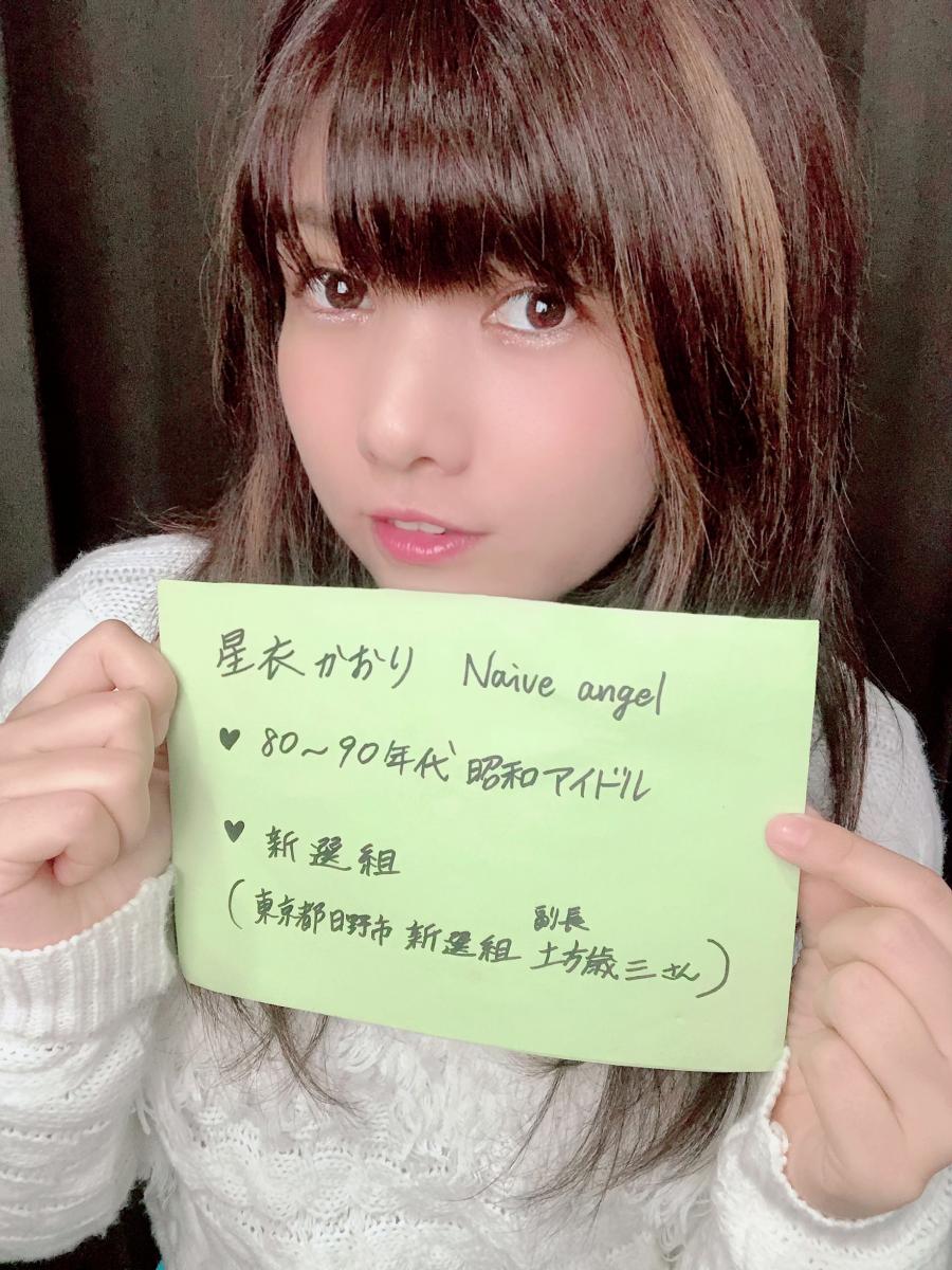 東京都日野市発!アイドルユニットNaive angel(ナイーブエンジェル)のメンバーです。 東京都日野市や多摩地域を中心にお祭りやイベントで歌わせて頂いたり都内ライヴハウスで歌わせて頂いたりしています。 Kaori(星衣かおり)は2つのスタイルで構成されてます♪ ☆昭和・80~90年代好きなアイドル ☆日野市の有名人新選組土方歳三さんについて歌うアイドル 是非是非応援よろしくお願いしますଘ(੭ˊ꒳ˋ)੭✧
