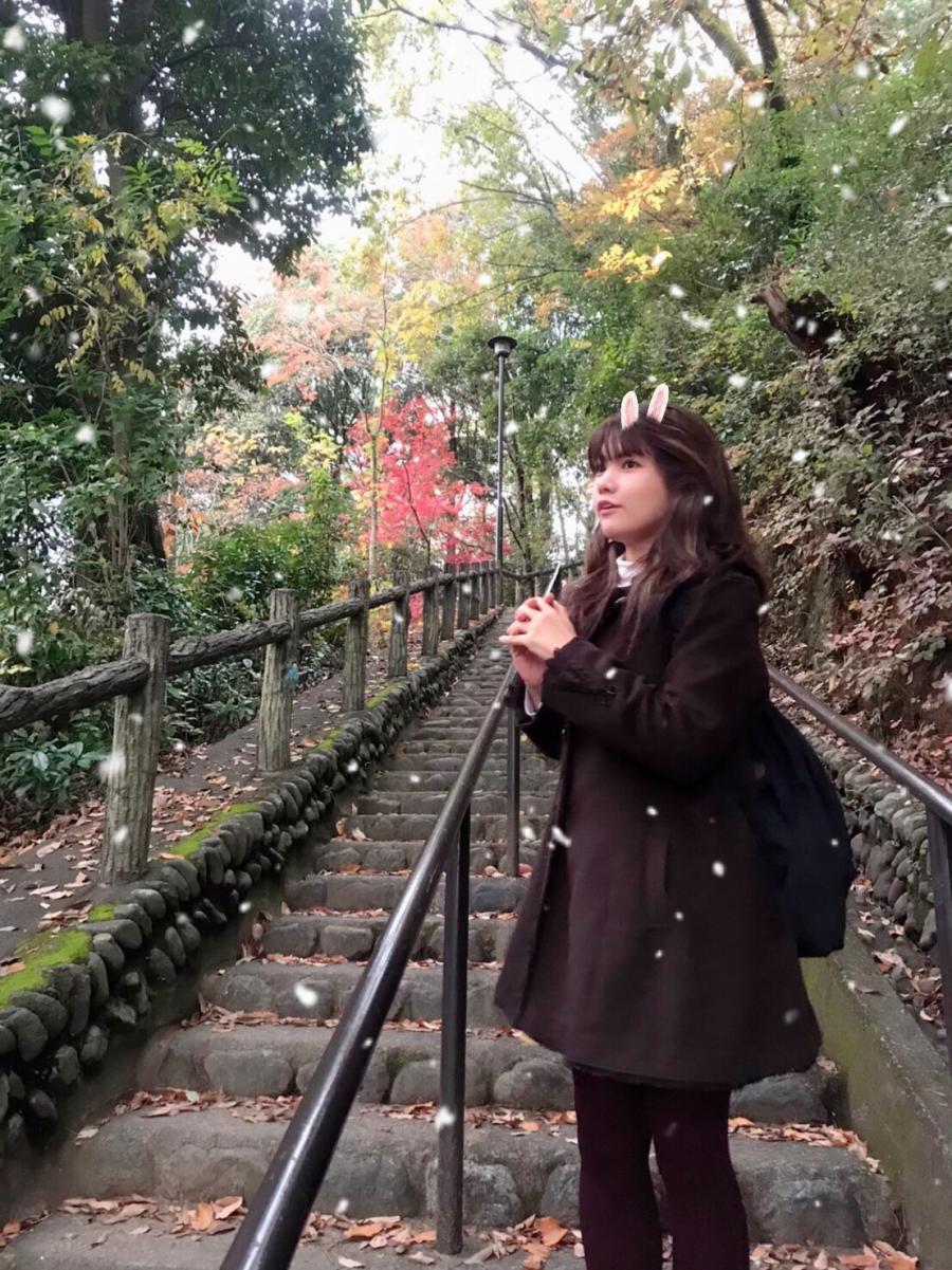 アプリで雪降らせてみた😆 紅葉なのに雪🍁⛄❄ なんかキレイ☺ 今日も1日お疲れ様〜🌙 チアチア、応援、ありがとう💓(0)