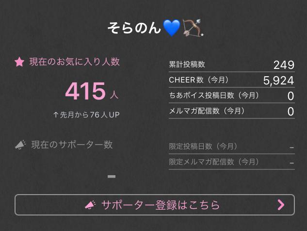 こんばんは🌙❕ 今日は天気が悪く湿気がありとても蒸し暑い1日でした🥵年中ずっと晴れて涼しかったらいいのになぁ〜と思う日々です(´•ᴗ• ก )՞ ՞北海道なのでわりかし涼しい方だと思うんですけど中々…!! いつもたくさんのCHEER+コメントありがとうございます🙇♀️🙇♀️お気に入り登録も少しづつ着実に増えていて感謝する毎日です(ᐡ ̳ᴗ ̫ ᴗ ̳ᐡ)近々配信する予定なのでぜひ見に来てみてください✨✨ ・コメント&CHEER頂いた方は必ず毎日チェックさせていただいています□✔🫡 で(13)