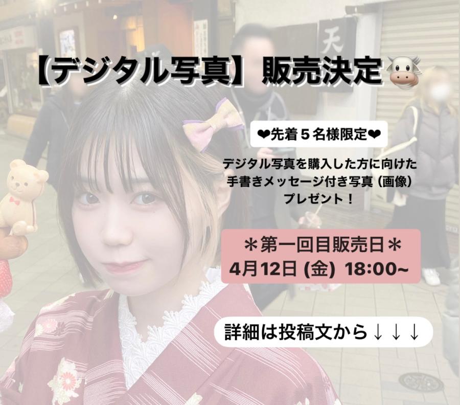 【お知らせ🎀】4/12からデジタル写真定期的に販売します!!この度ファンの方々のお声もあり、デジタル写真を販売することになりました♡ 簡単にお話すると、4月12日から定期的にデジタル写真販売が行われます!! もちろん写真は毎回違いますし、購入した方には購入した方に向けた手書きメッセージがプレゼントされます!!! 詳細は、Instagramにて先に発表致しましたので、そのスクショを掲載します💗 ご覧下さい!!!!! ↓↓↓(0)