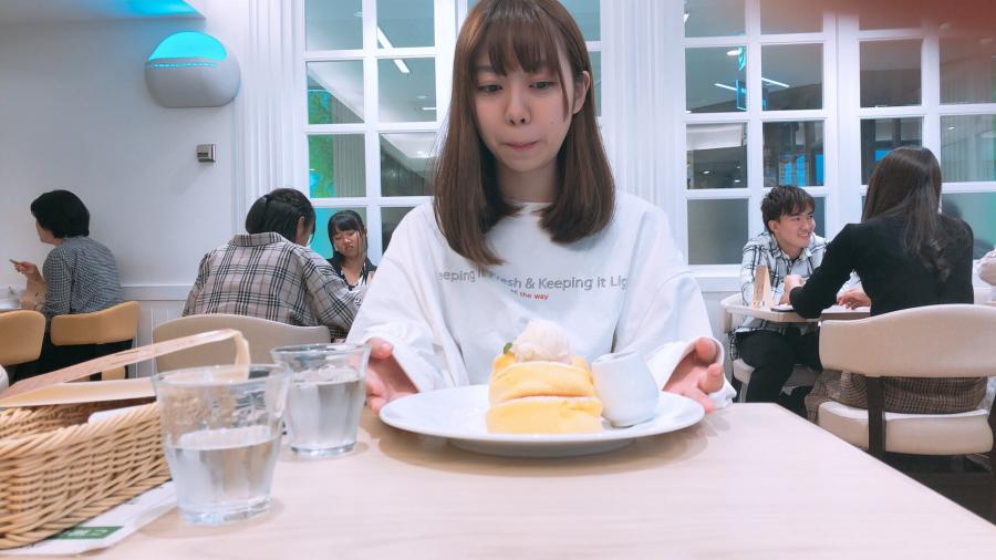 Twitterにのっけた写真の別バージョン パンケーキぶるぶるしてる時に友達に撮られたの笑 初めて幸せのパンケーキ食べに行ってきた! 見た目ほど甘くなくてぺろっといけるくらい美味しかった😋 この土日、友達の家にお泊まりしてご飯食べいったりしてめっちゃ充実した2日間になった!!! 家に帰ってきたら一気に現実に引き戻されたよ😭(4)
