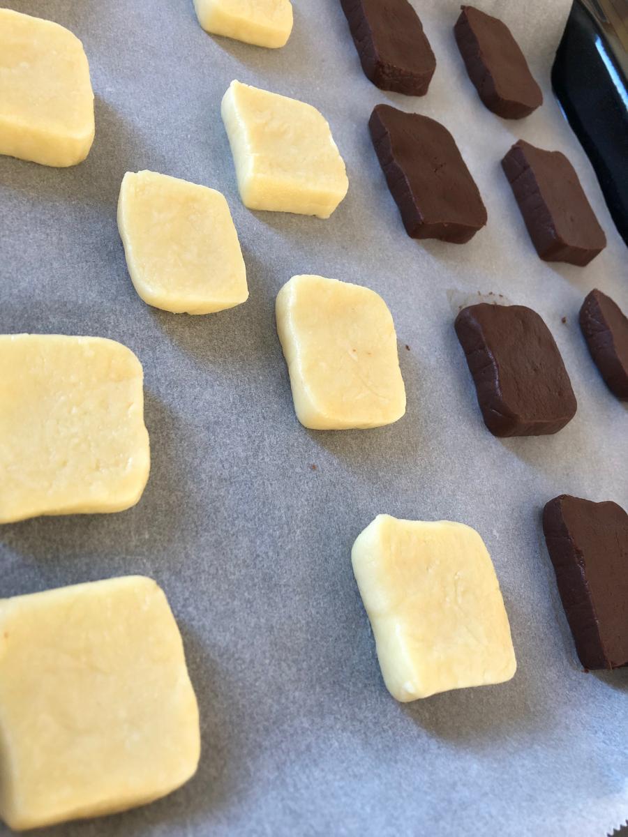 クッキー! って言っても普通の硬いクッキーじゃなくて、チョコレートを入れてとろけるクッキーを作りましたよ! ケーキ屋さんでとろけるクッキー食べて、美味しすぎたから自分で作ってみたんだけど、普通のクッキーに比べてやき時間が短いから焼けてるのか心配になったけど、美味しくできました! これは、焼き立てよりも時間が経って冷たくなってからの方が美味しいことが分かりました! ちなみに、この写真は焼いたあとじゃなくて焼く前の写真!笑 焼いたあとは撮るの忘れました😅(4)