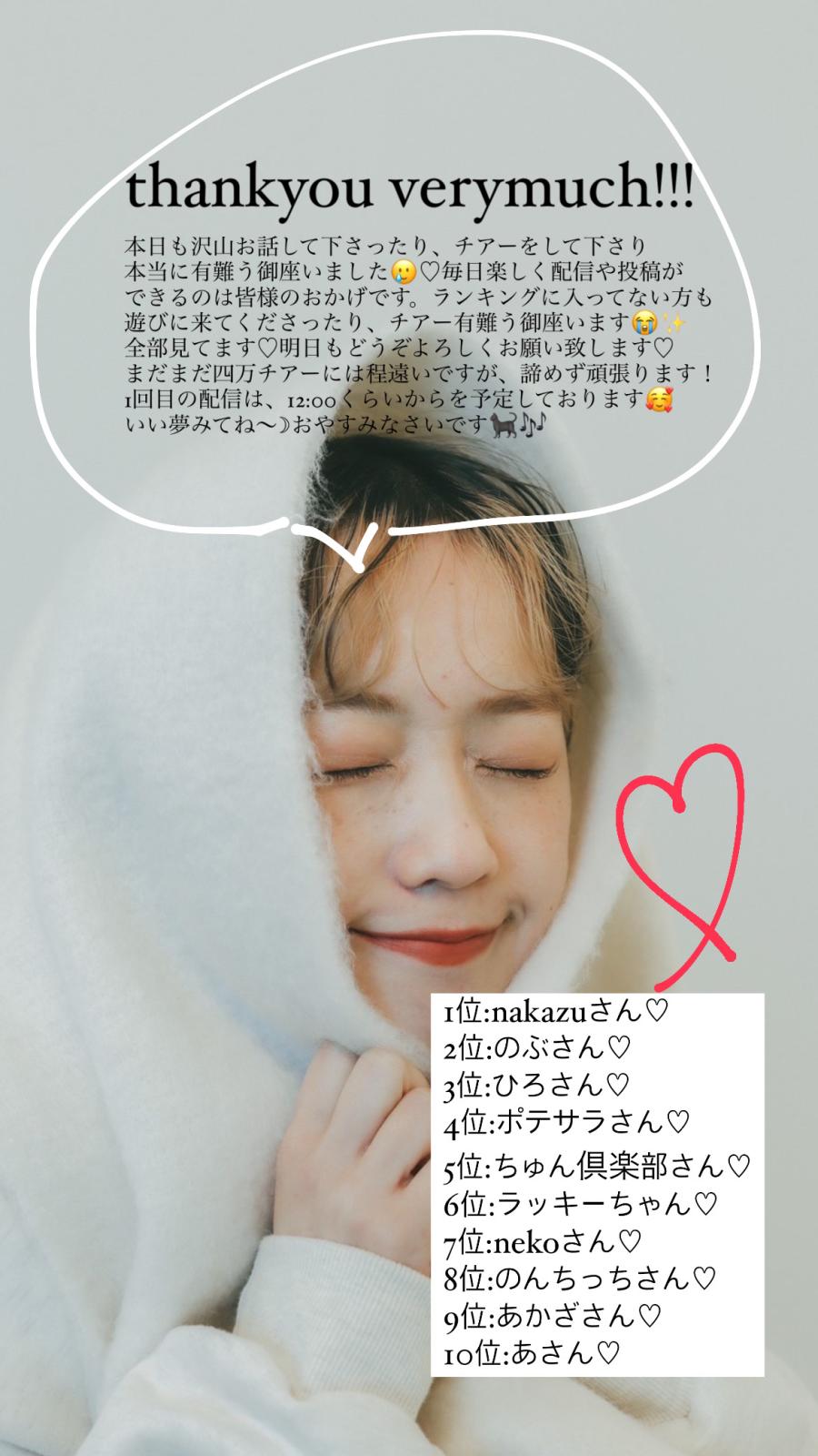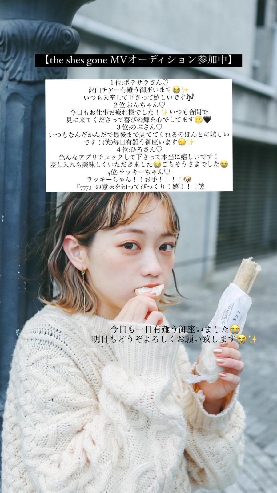 『the shes gone』様のMV出演オーディション イベント参加中です! こんばんは🌙夜分遅くにすみません💦💦 本日も沢山の夢を見させていただいたり、お話しして下さってありがとうございました🥲 皆様のおかげですごくすごく、幸せな1日でした😭💐 みなさまから贈ってくださるCHEER数(応援pt)をもとにランキング化されるみたいです✨ 22日までに40,000CHEERを目指して 明日も配信楽しみながら頑張ります✨ 明日は1日買い出しお仕事や撮影が詰まっておりまして、少し配信が少なめにな(0)