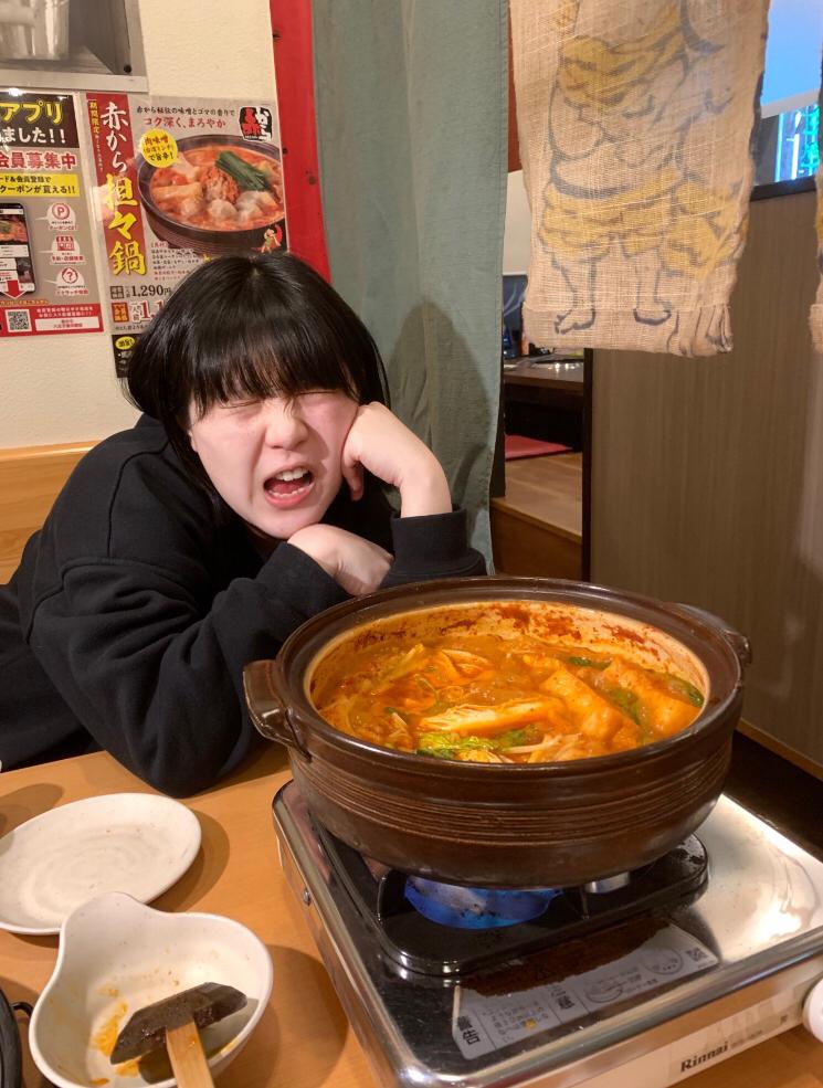 【なぎちめちゃめちゃオフモード】 赤からが辛すぎてあーーってなってるなぎちです 1からなのにこんな顔になってお恥ずかしい限り(0)