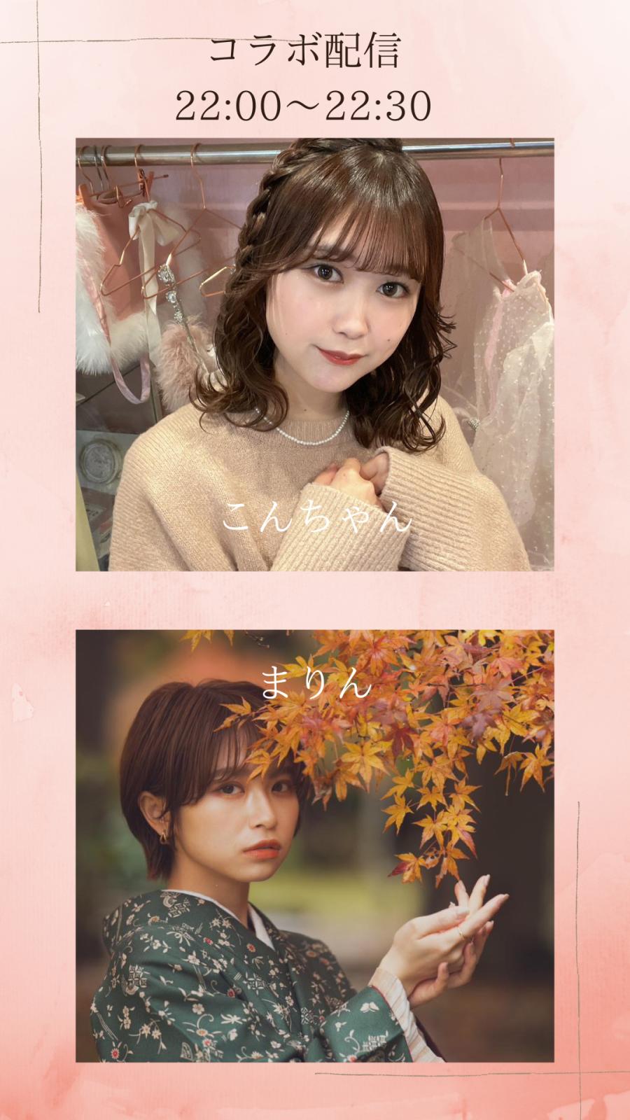 22:00〜22:30 初コラボ配信✨ こんちゃん🦊🤍さんとまりんで コラボ配信します🌷 みなさん今日も1日お疲れ様です🌙 まりんの初コラボ配信! みんな見にきてください😉(1)