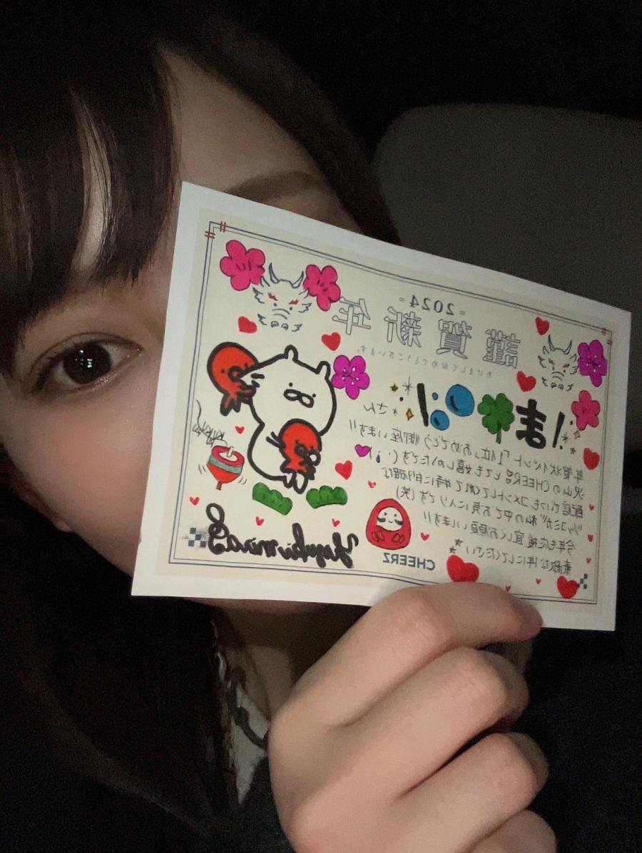 こんばんは 心苦しいニュースも多く、不安を感じている方も多いと思います。被災された方々が1日でも早く安心して過ごせるようにと願っています。 私は自分にできることを精一杯していきたいと思います。少しでも皆様の力になるように、元気を与えられる配信、投稿をしていきたいと思いますのでよろしくお願いします!! 写真は去年年賀状イベントで書いた物です! 無事届いてると思います! 喜んでくれてたら嬉しいな🫣(2)